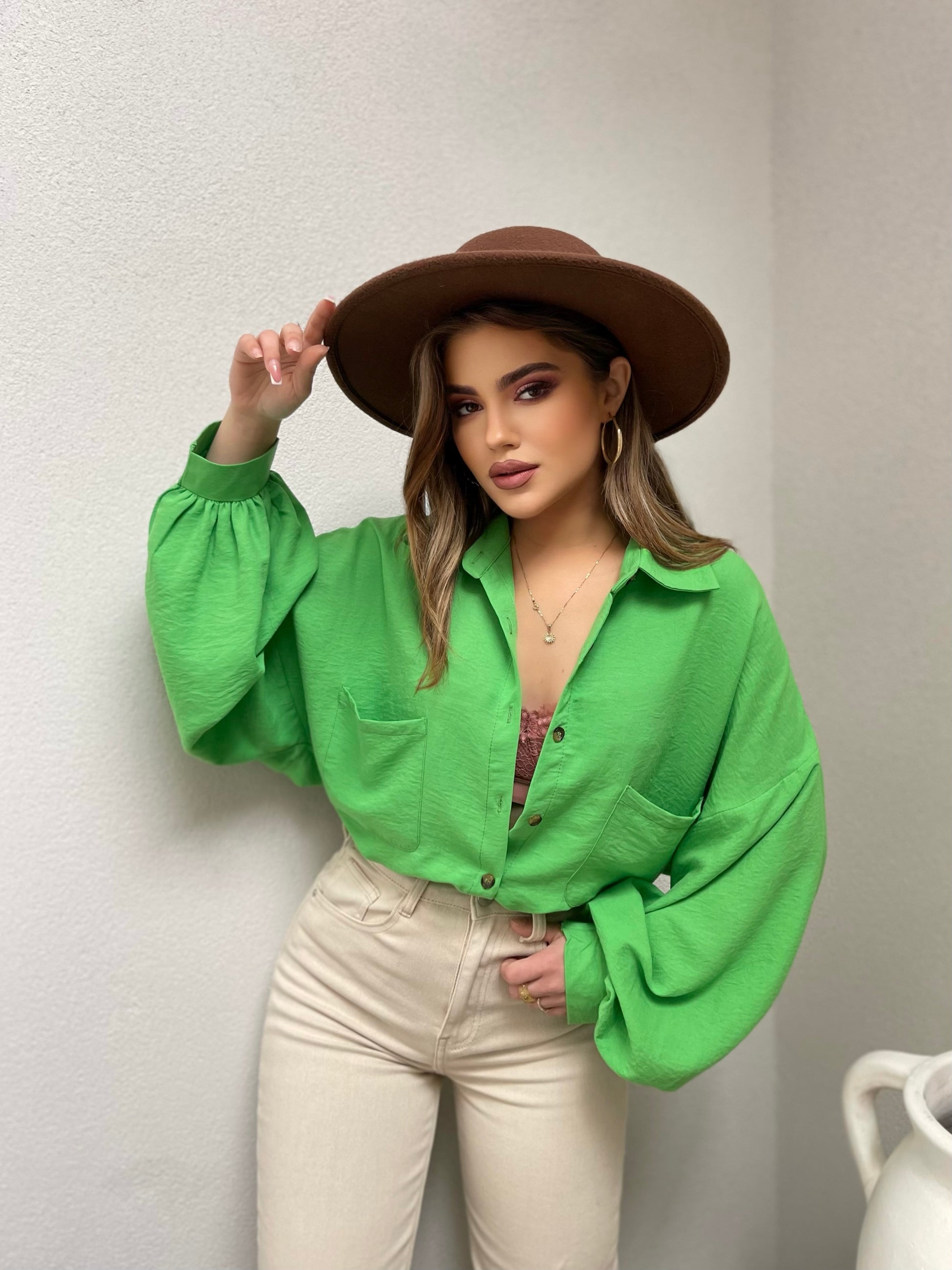 Kemishe me xhepa te vegjel perpara. Vjen ne dy ngjyra: e bardhe dhe jeshile . Ka jake ne forme V-je. Tek pjesa e menges vjen me e ngushte. Mberthimi behet me ane te kopsave.