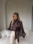 Kemishe me lidhje ne qafe, materiali i saj eshte saten. Perfekte per tu per tu dukur femerore dhe class.