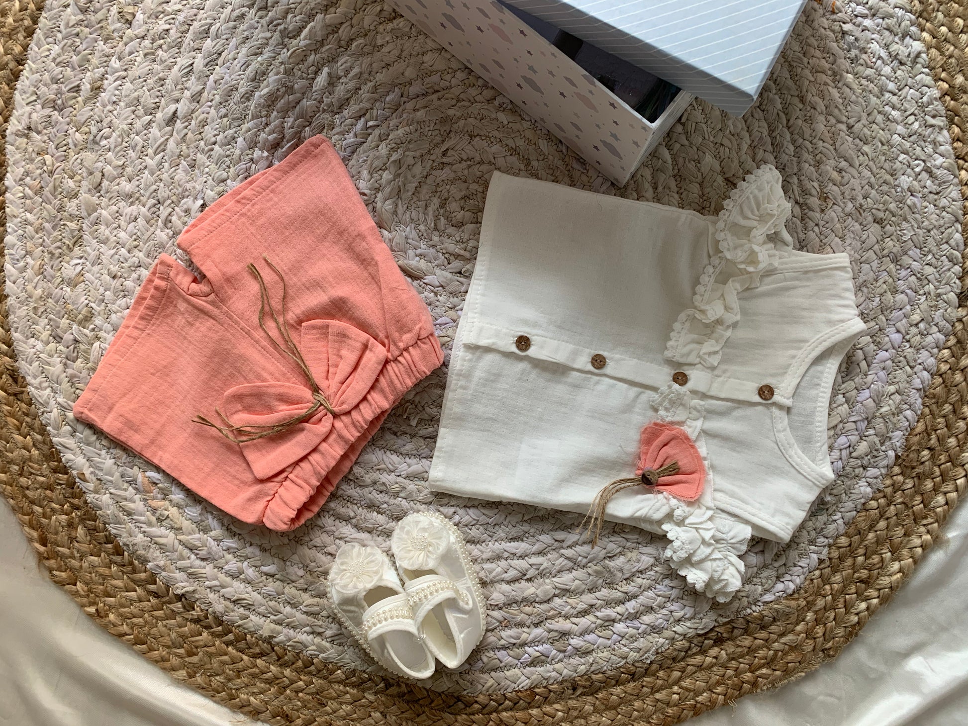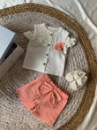Kostum me bluze dhe tuta te shkurter. Bluza vjen me krahe te shkurter dhe kopsa perpara. Tutat kane llastik dhe cilesi fantastike. Super komode.