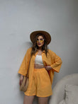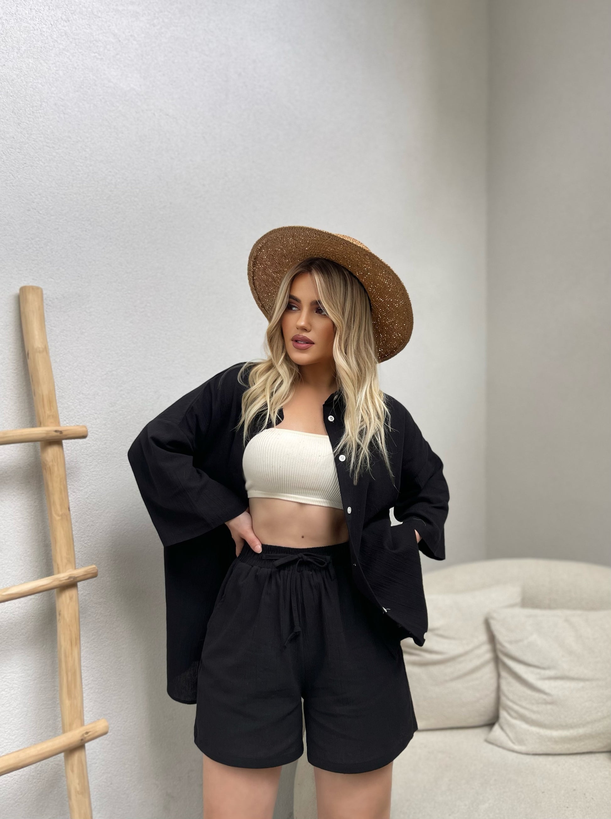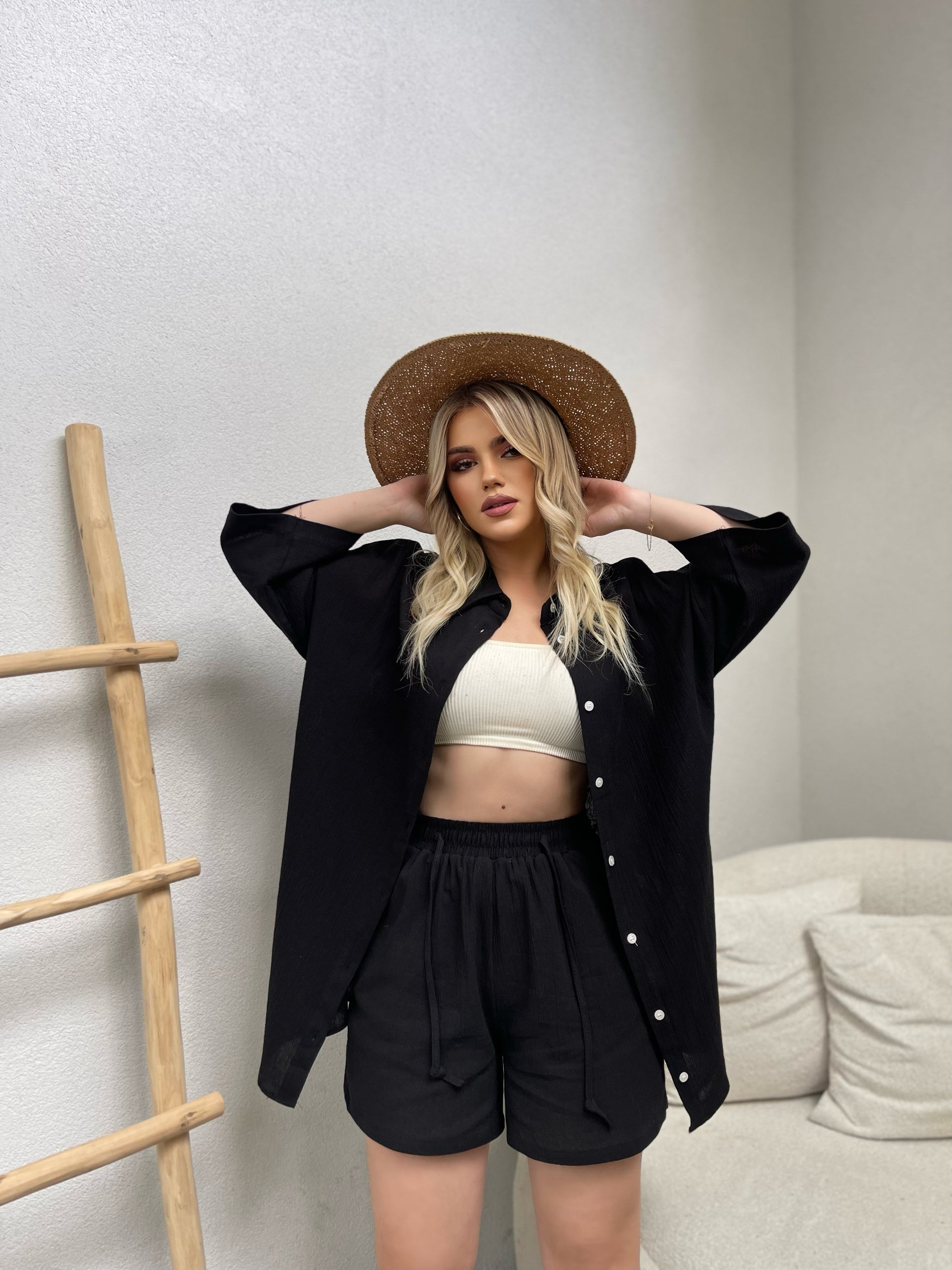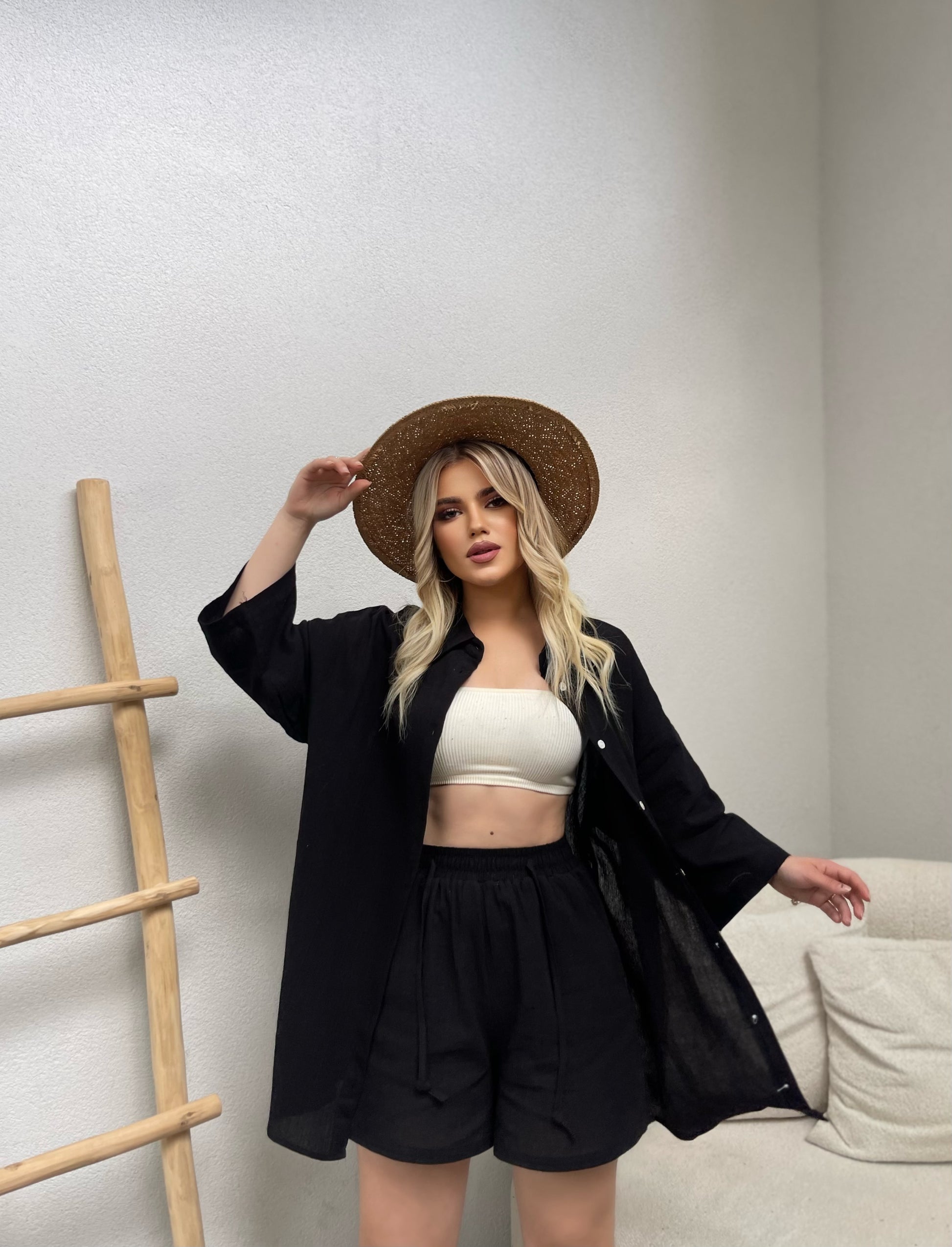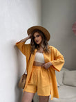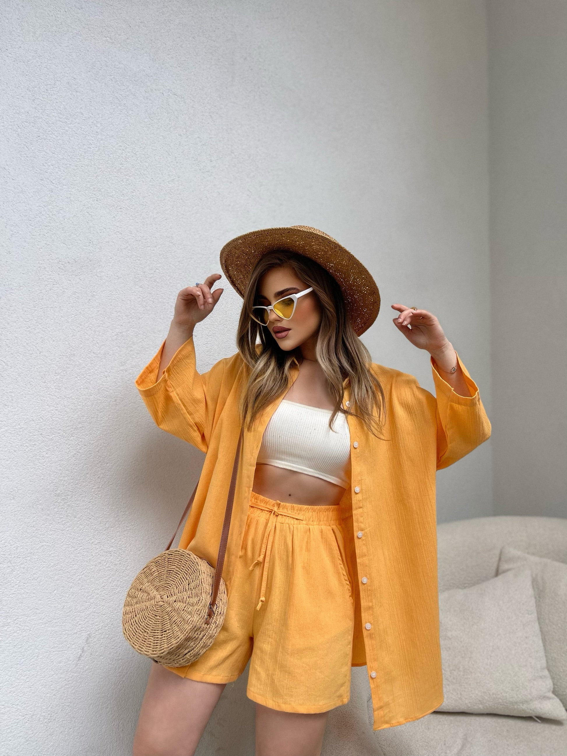 Kostum kemishe dhe pantallona te shkurter. Kemisha vjen me krahe te shkurter dhe kopsa para. Pantallonat kane lidhese ne bel.