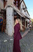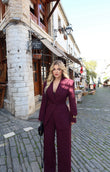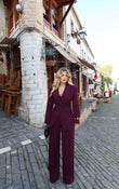 Set klasik xhakete dhe pantallona te gjera. Xhaketa eshte me lidhje pas qe ngushtohet tek pjesa e belit dhe e ben akoma dhe me fine.