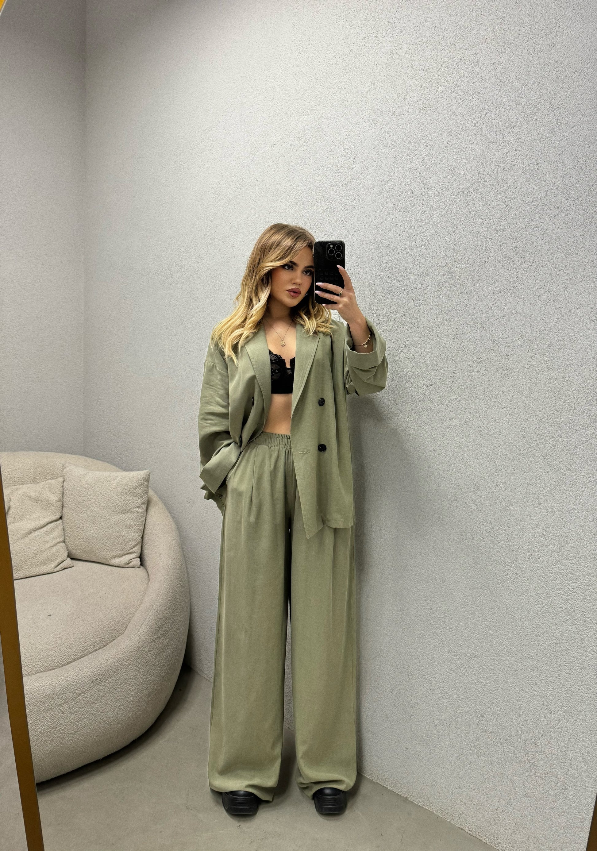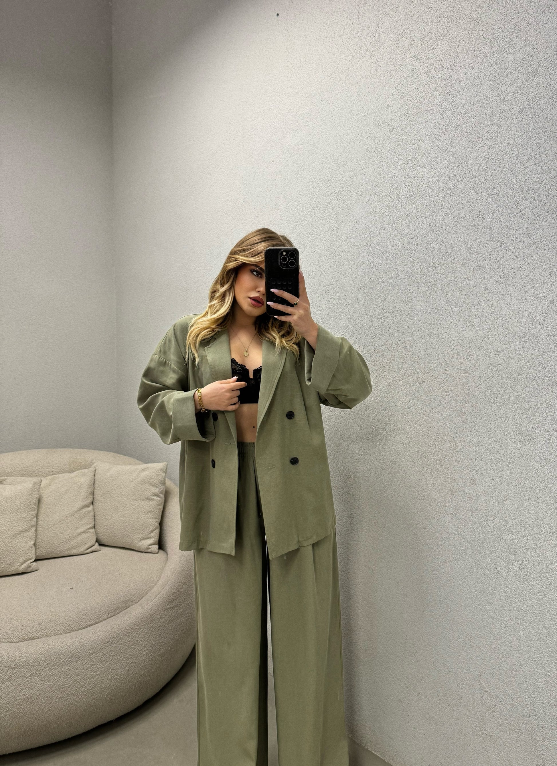 Kostum klasik me xhakete dhe pantallona te gjera. Eshte shume i rehatshem dhe ka cilesi fantastike.