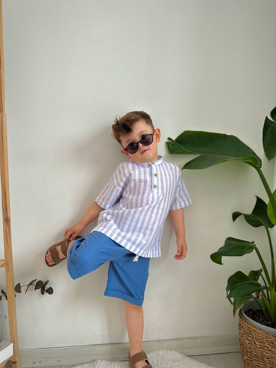 Kostum serioz me bluze me vija dhe pantallona te shkurtra. Cilesi spektakolare.