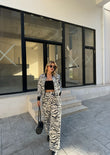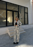 Set me dy pjese. Vjen me xhakete dhe pantallona te gjata. Ka material te plote dhe cilesi fantastike.