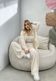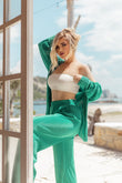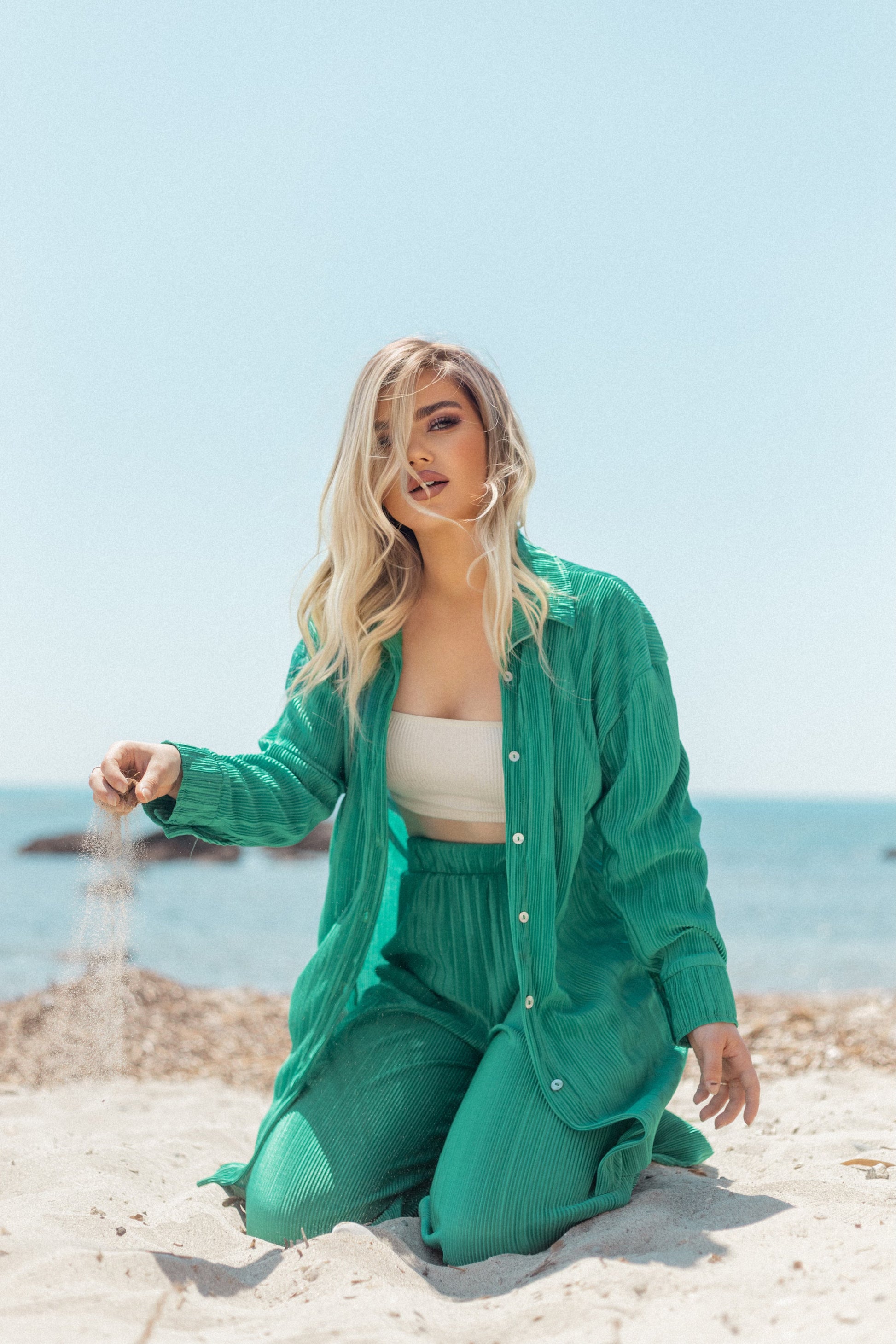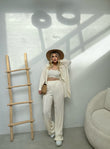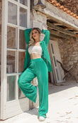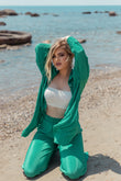 Kostum me rriga me kemisha dhe pantallona te gjata. Kemisha vjen me krahe te gjate dhe kopsa para. Pantallonat jane te lirshme dhe kane llastik ne bel. Super komode dhe material fantastik.