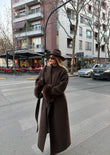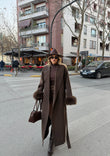 Pallto e gjatë në ngjyrë kafe me pellush elegant tek mëngët. Jep ngrohtësi dhe stil në çdo paraqitje. Dizajn modern dhe shumë komod për veshje të përditshme. Kombinohet lehtë me çdo outfit.