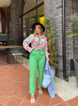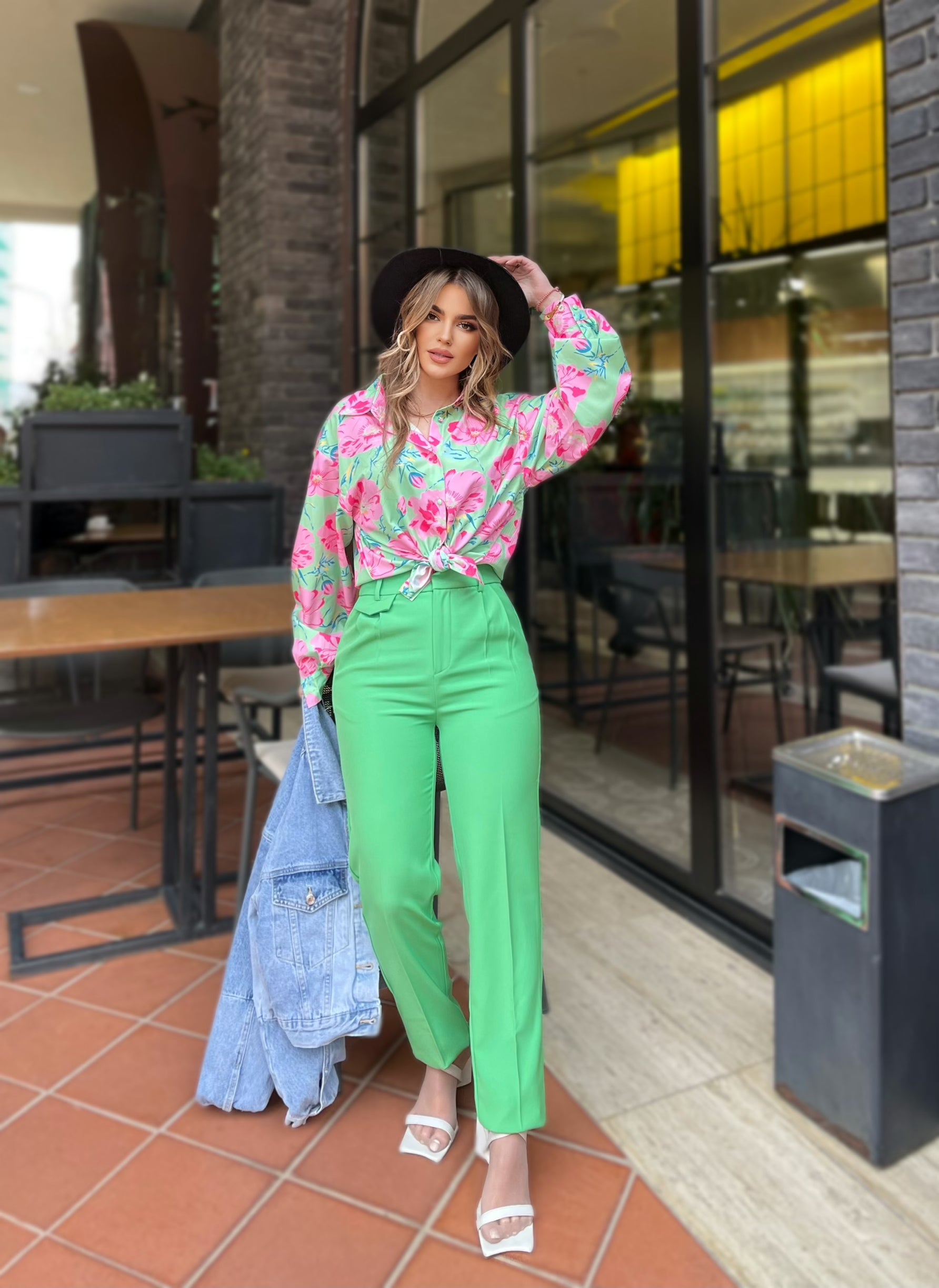 Pantallona klasike ngjyre jeshile. Me tegela para dhe xhepa anash. Kane pak elasticitet. Nuk tregojne asnje defekt.