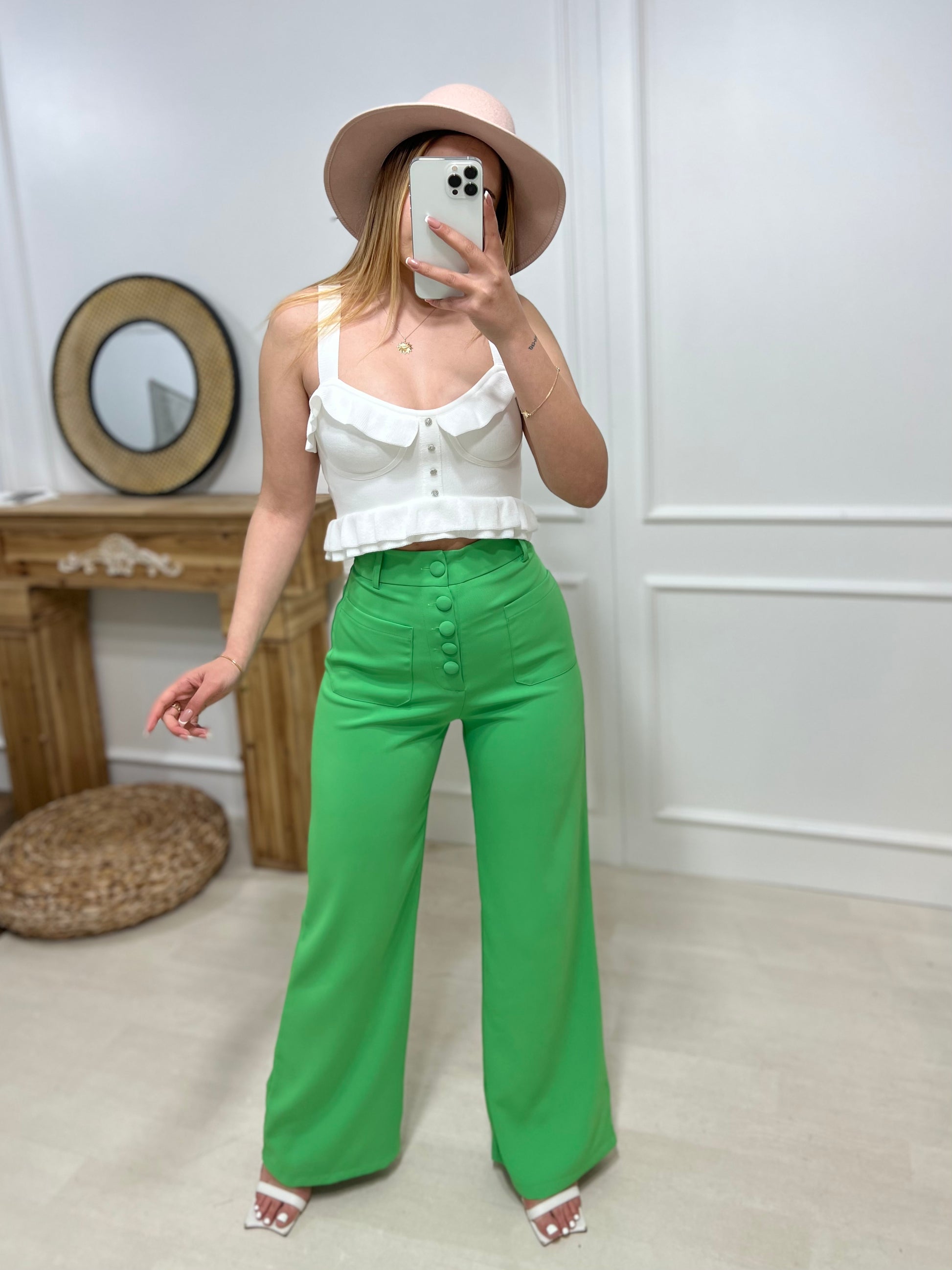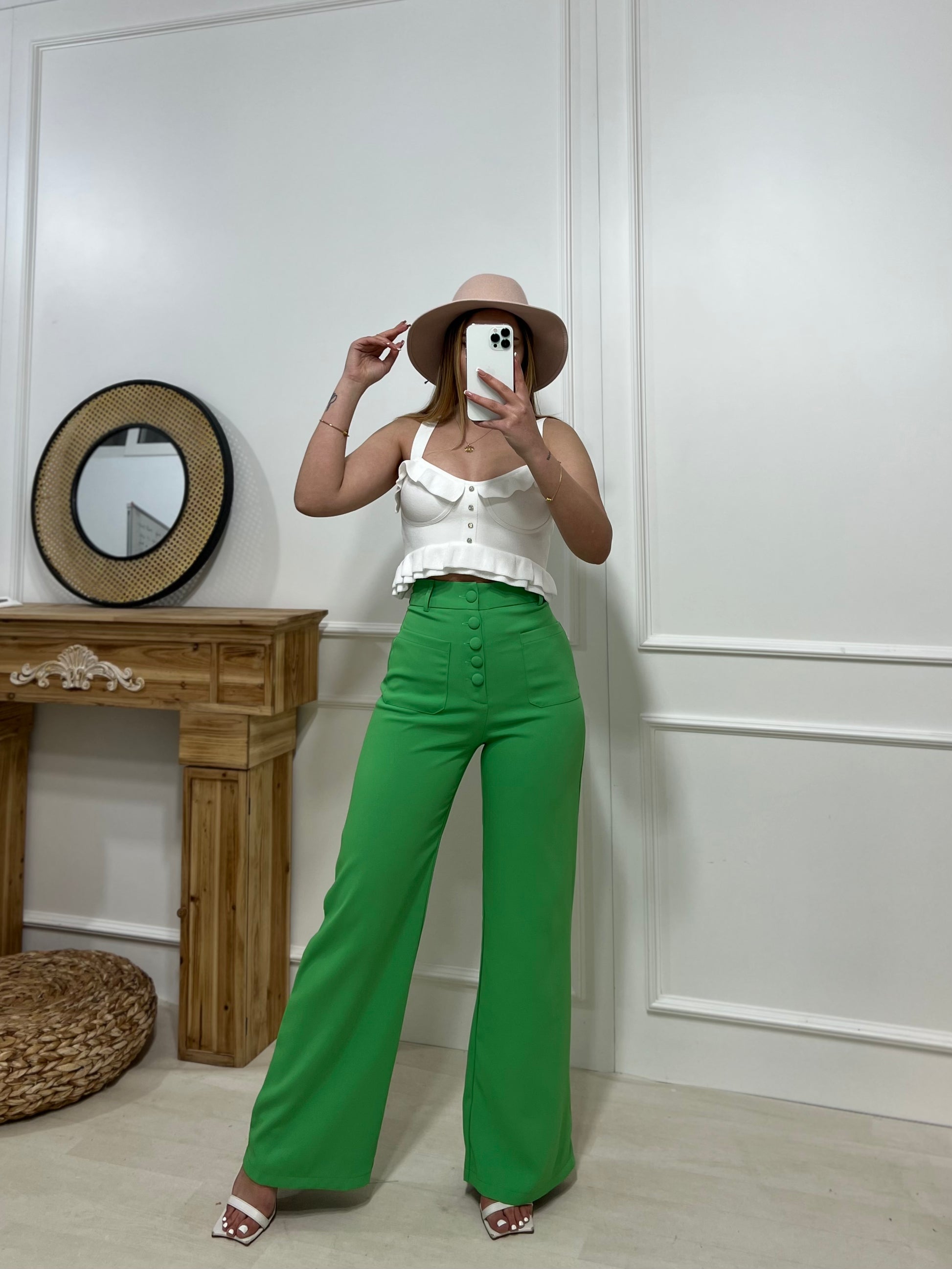 Pantallona klasike, perfekte ne trup. Ne ngjyren me te bukur te stines. Kane elasticitet. 5 kopsa para. Vjen ne dy ngjyra e zeze, jeshile, e bardhe dhe roze