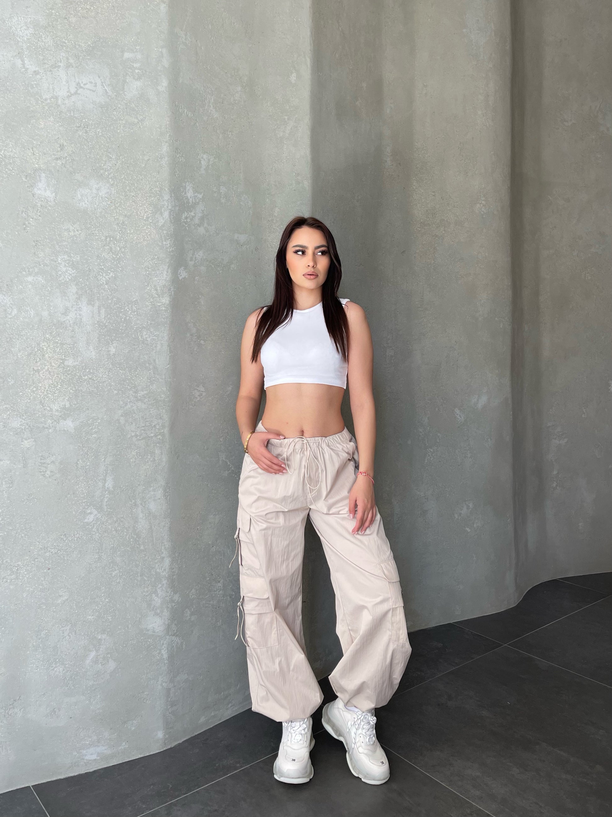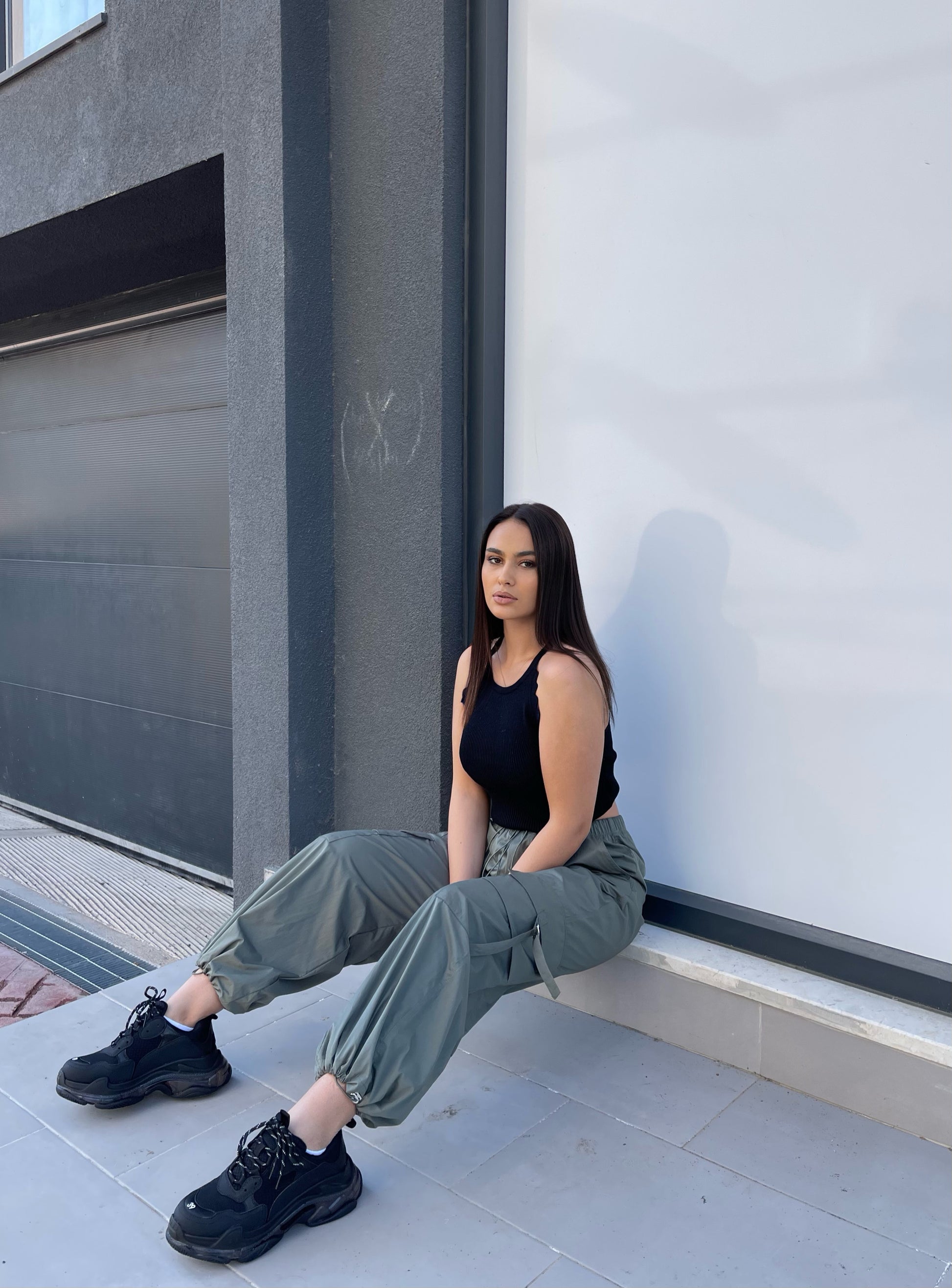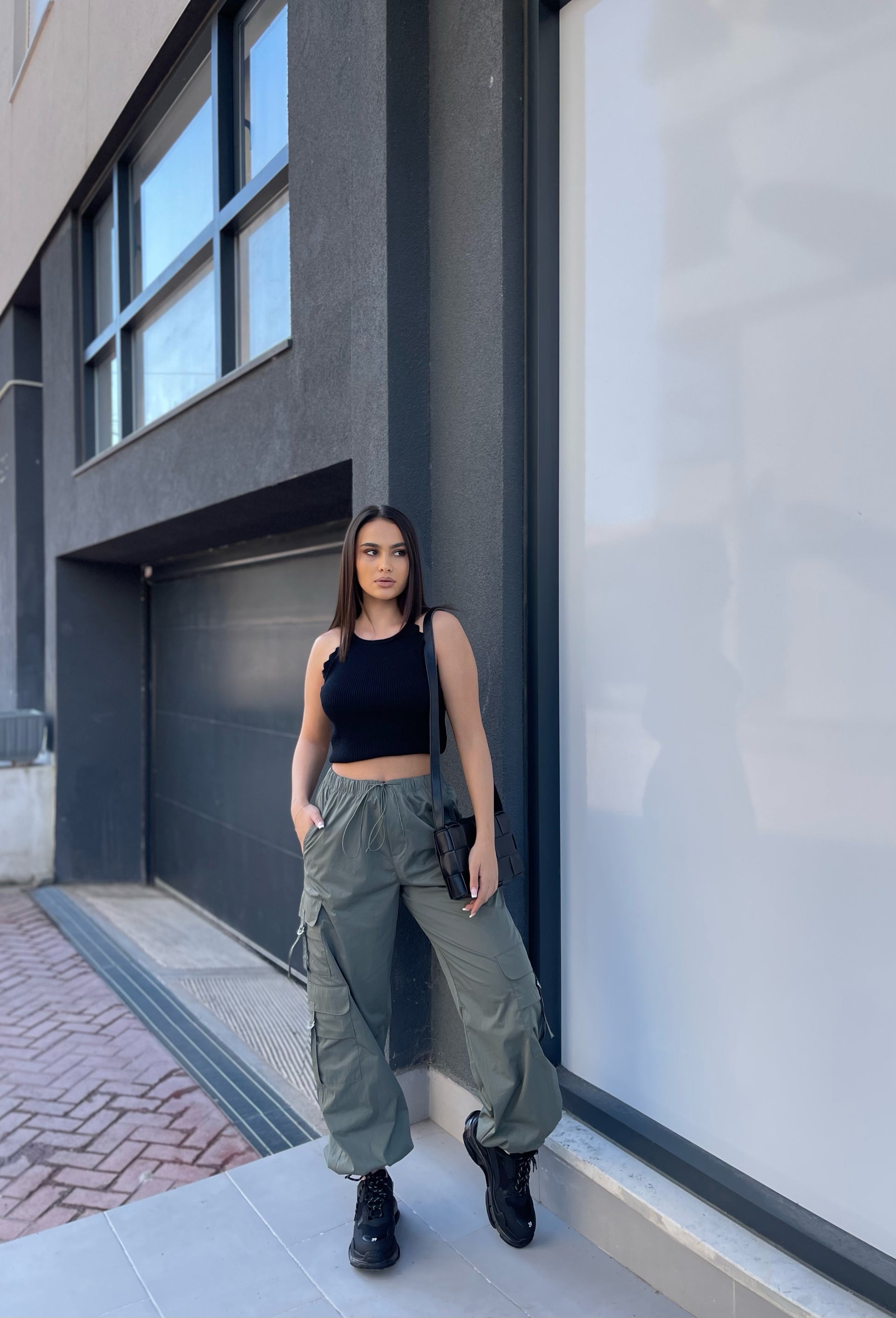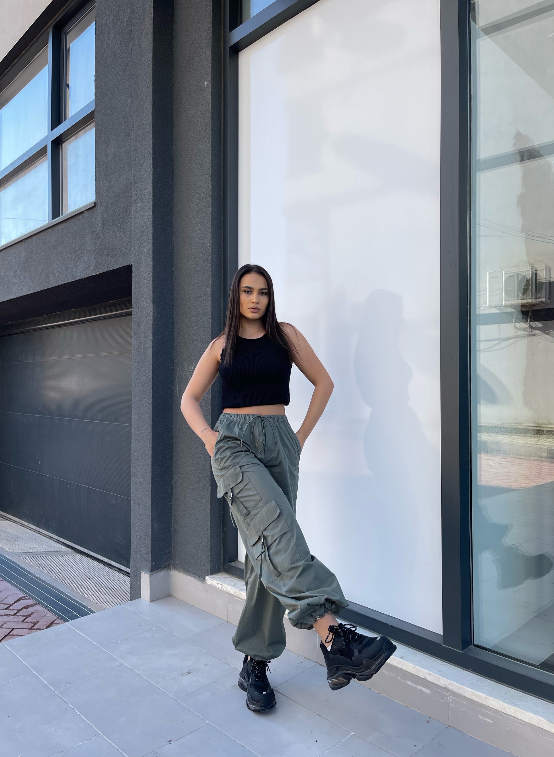 Pantallona te gjera me llastik ne pjesen e belit me xhepa te bollshem ne pjesen anesore. Me llastik ne pjesen fundore. Teper tekombinueshme, shume stil dhe lehtesisht te kobinueshme.
