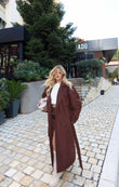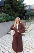 Pardesy ngjyre kafe. Pardesy trecerekshe e lehte dhe shume praktike. Permban xhepa, kopsa dhe rripin e saj komod. Model i thjeshte.