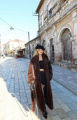 Pellush ngjyre kafe. Pellush i gjate ngjyre kafe e pjekur. Material super i bute, i ngrohte dhe cilesi premium. Model i thjeshte dhe i kombinueshem.
