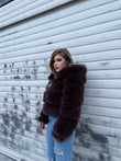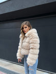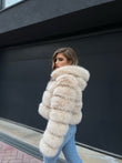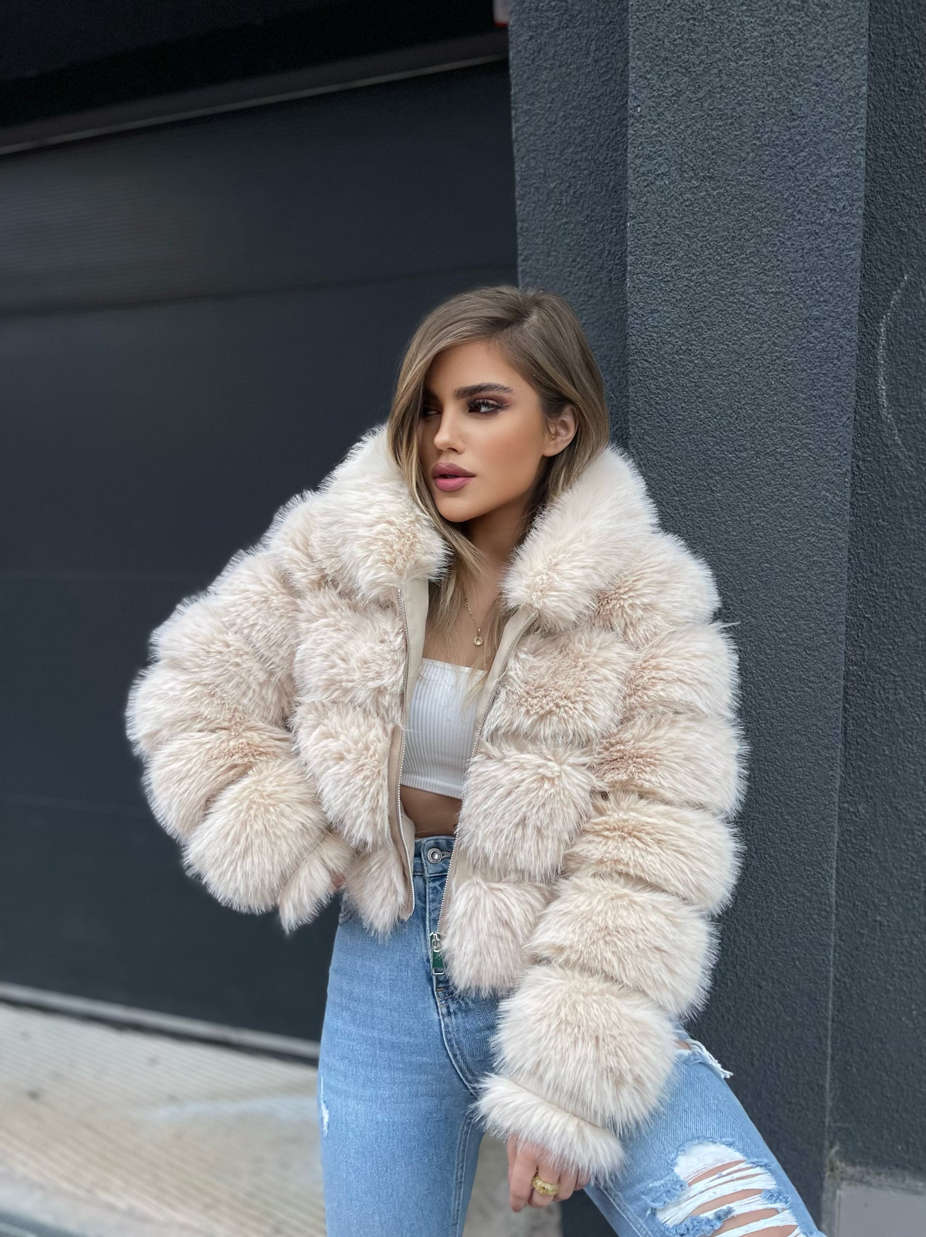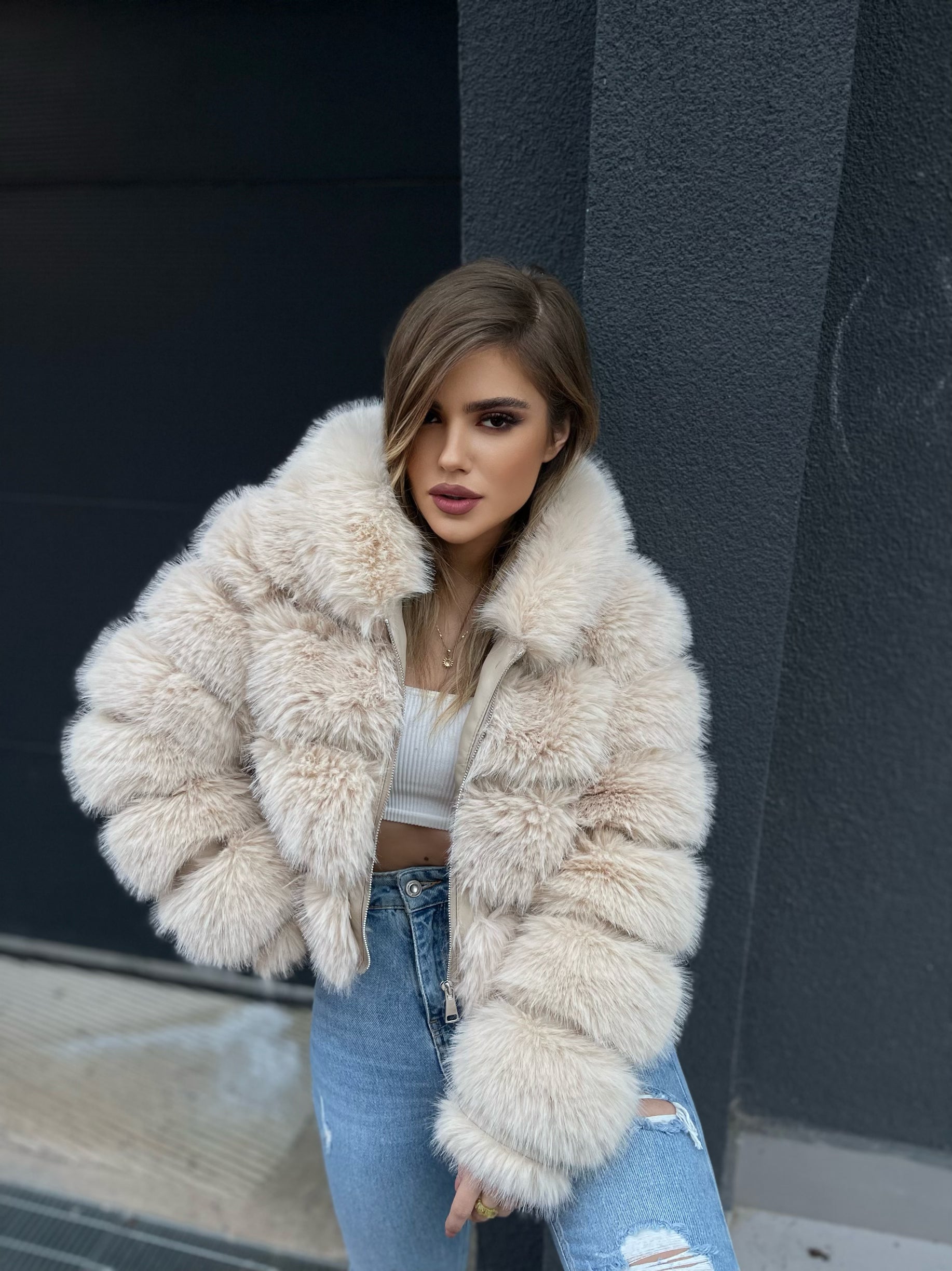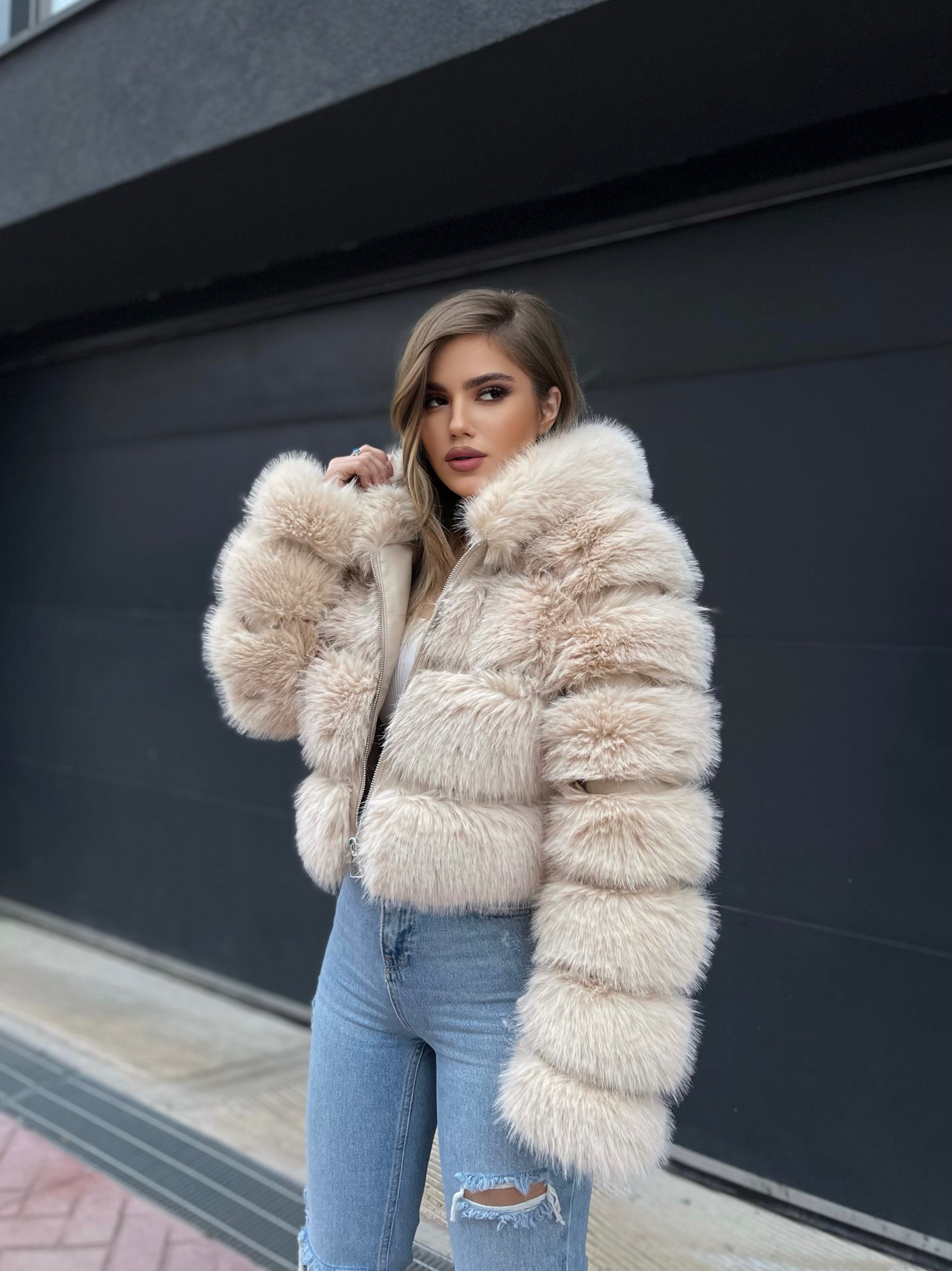 Pellush i shkurter me menge te gjata me kapuc te bollshem. Mberthimi behet me zinxhir ne pjese e perparme. Teper i kombinueshem dhe i ngrohte. Modeli vjen ne dy ngjyra: kafe dhe bezhe.