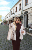 Pellush i shkurter me nuanca bezhe dhe kafe te erret. Ka qime te plote, shume te ngrohte dhe cilesore. Perfekt per cdo outfit ne dite te ftohta.