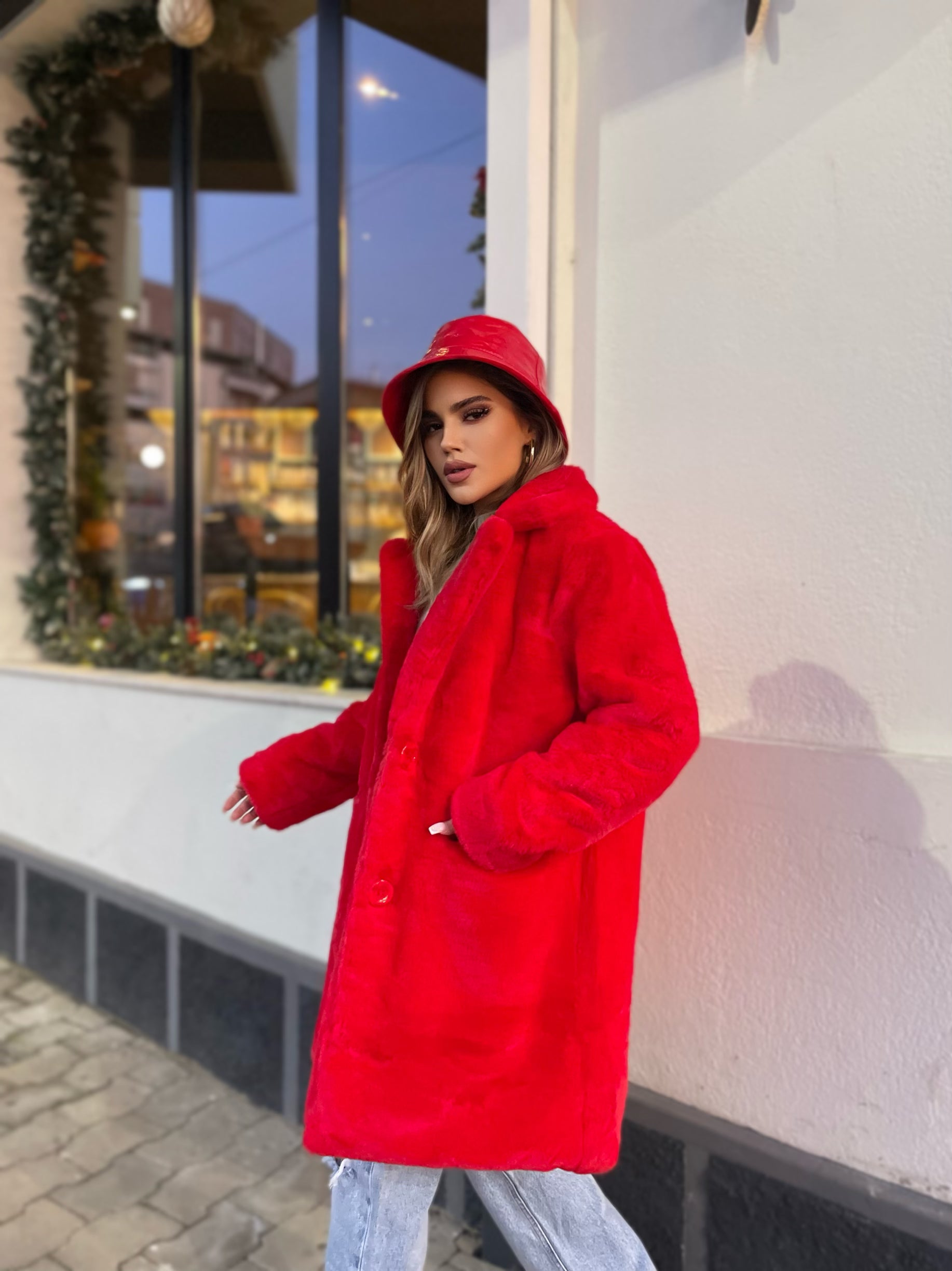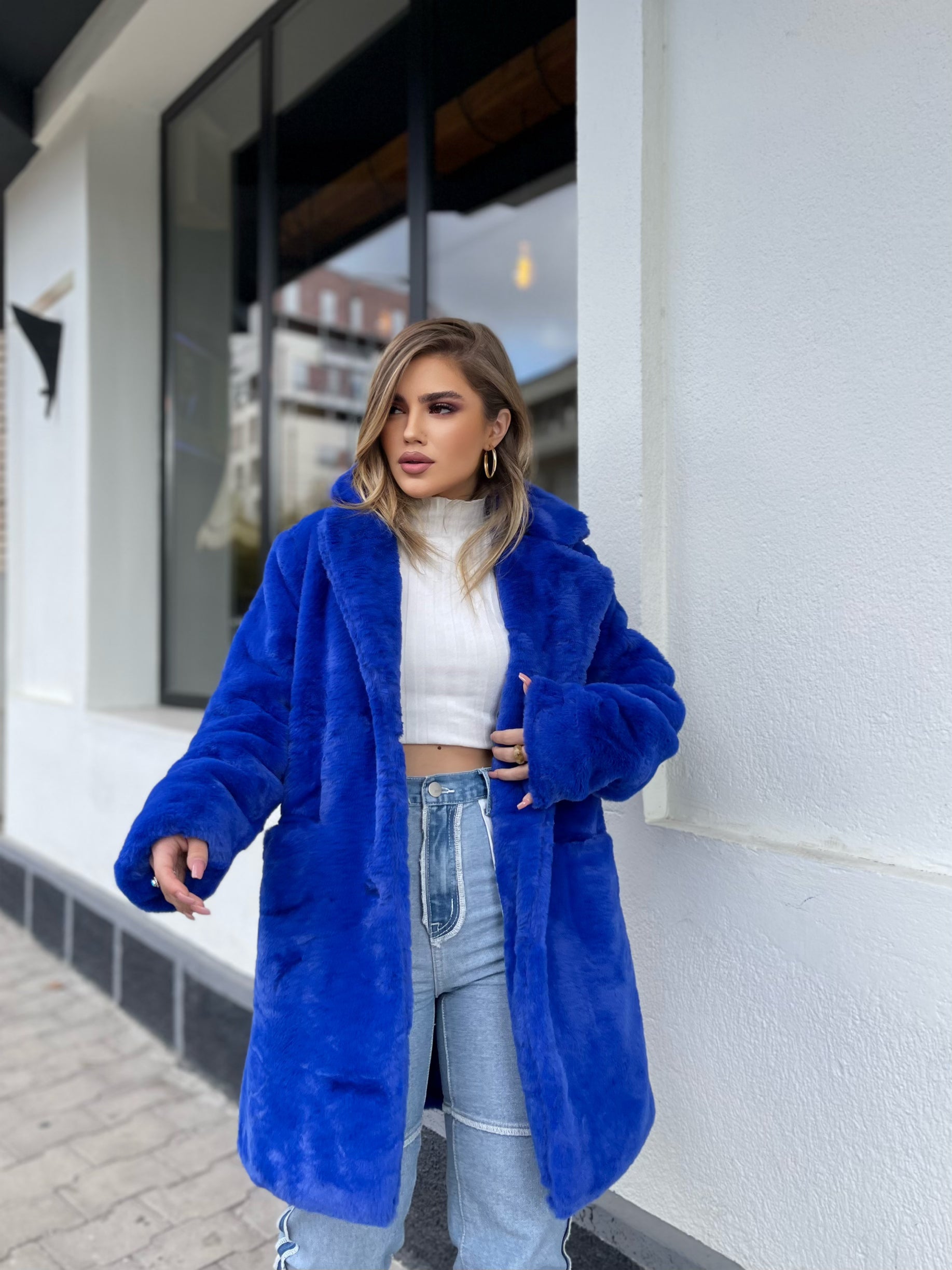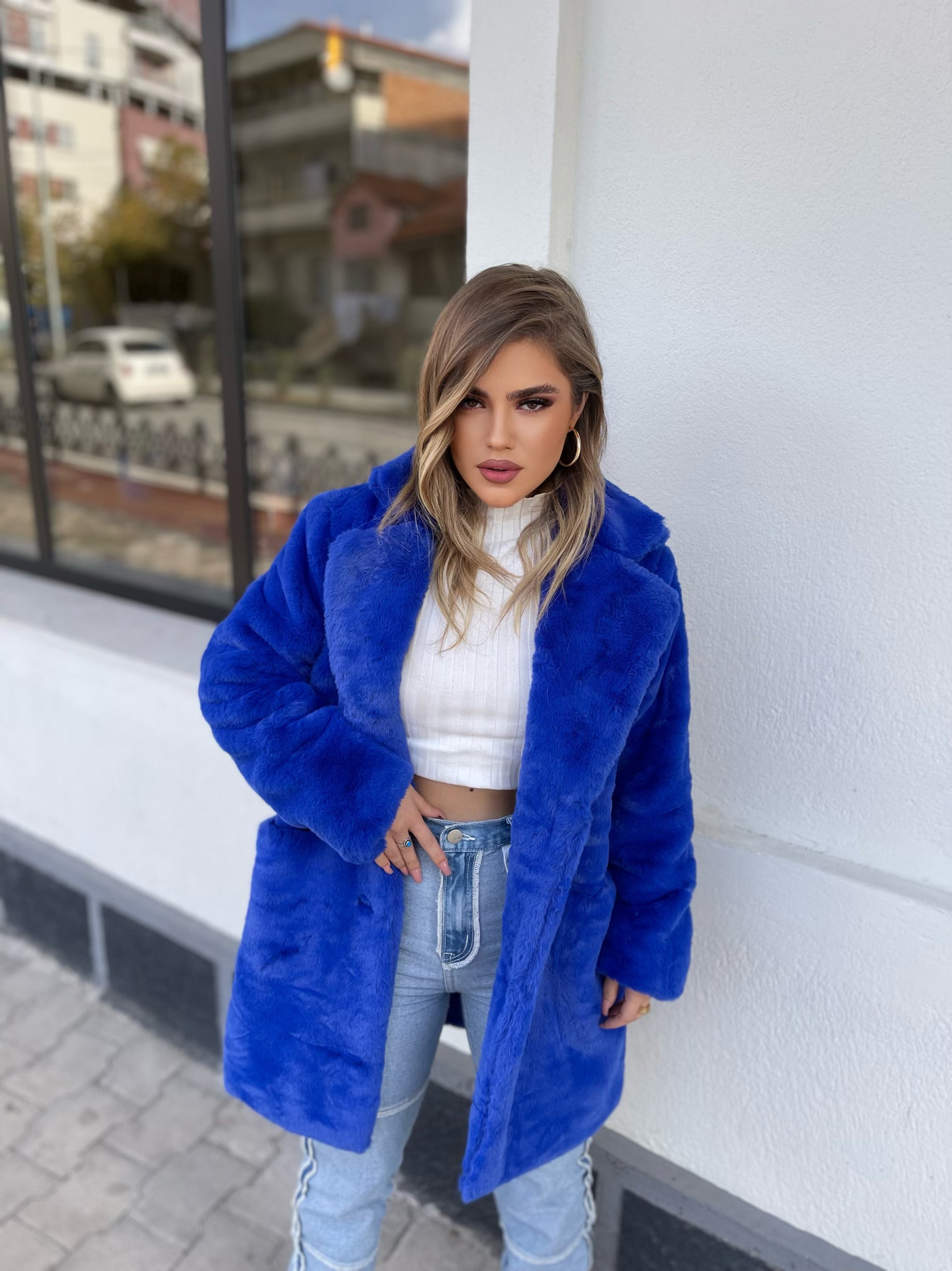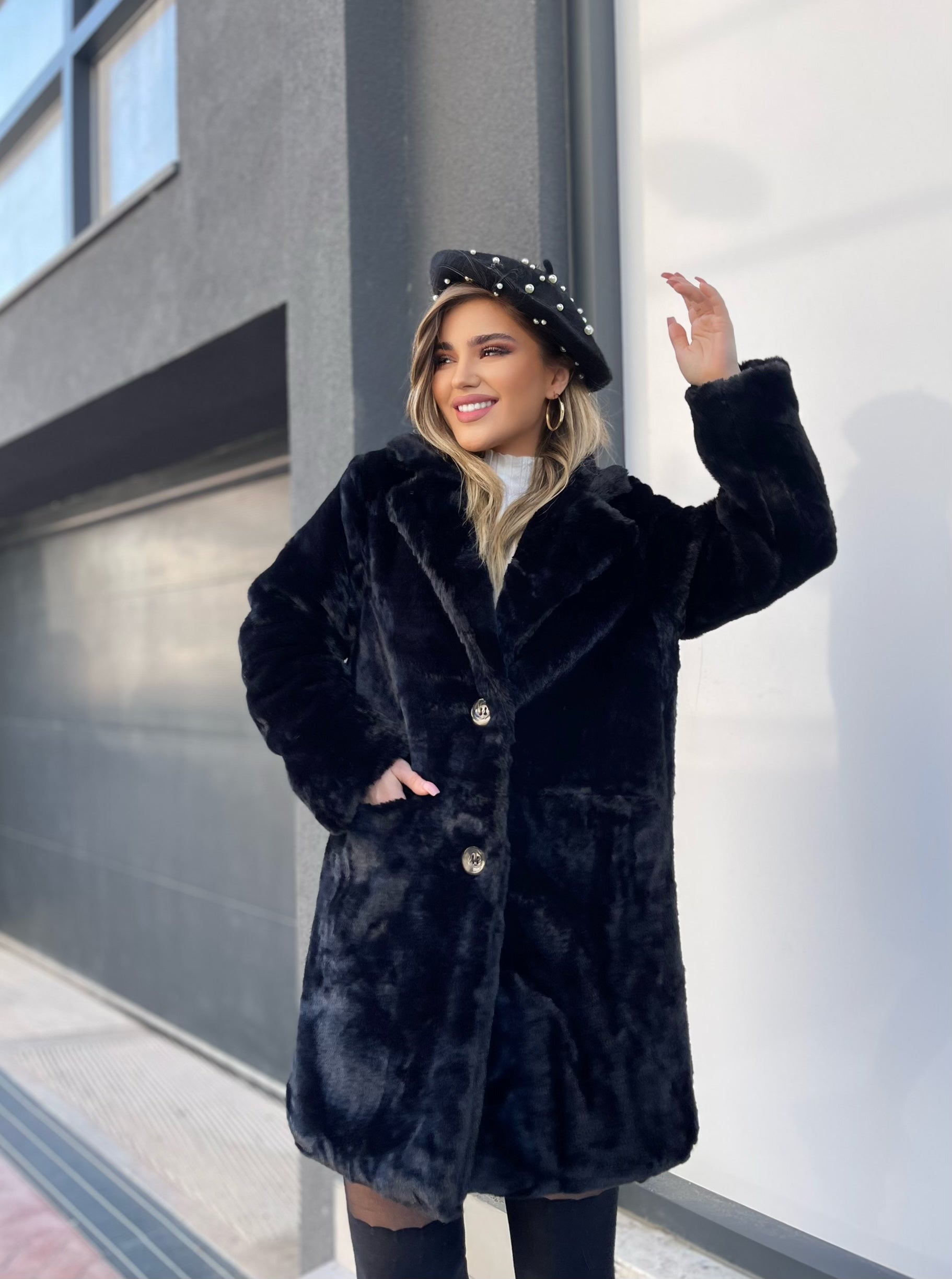 Pellush i zi me jake me kapak me xhepa pllak ne pjesen e perparme. Me menge te gjata. Mberthimi behet me kopsa ne pjesen e perparme. Pellushi ka gjatesi normale. Modeli vjen ne kater ngjyra : i zi, blu saks, jeshil dhe i kuq