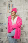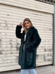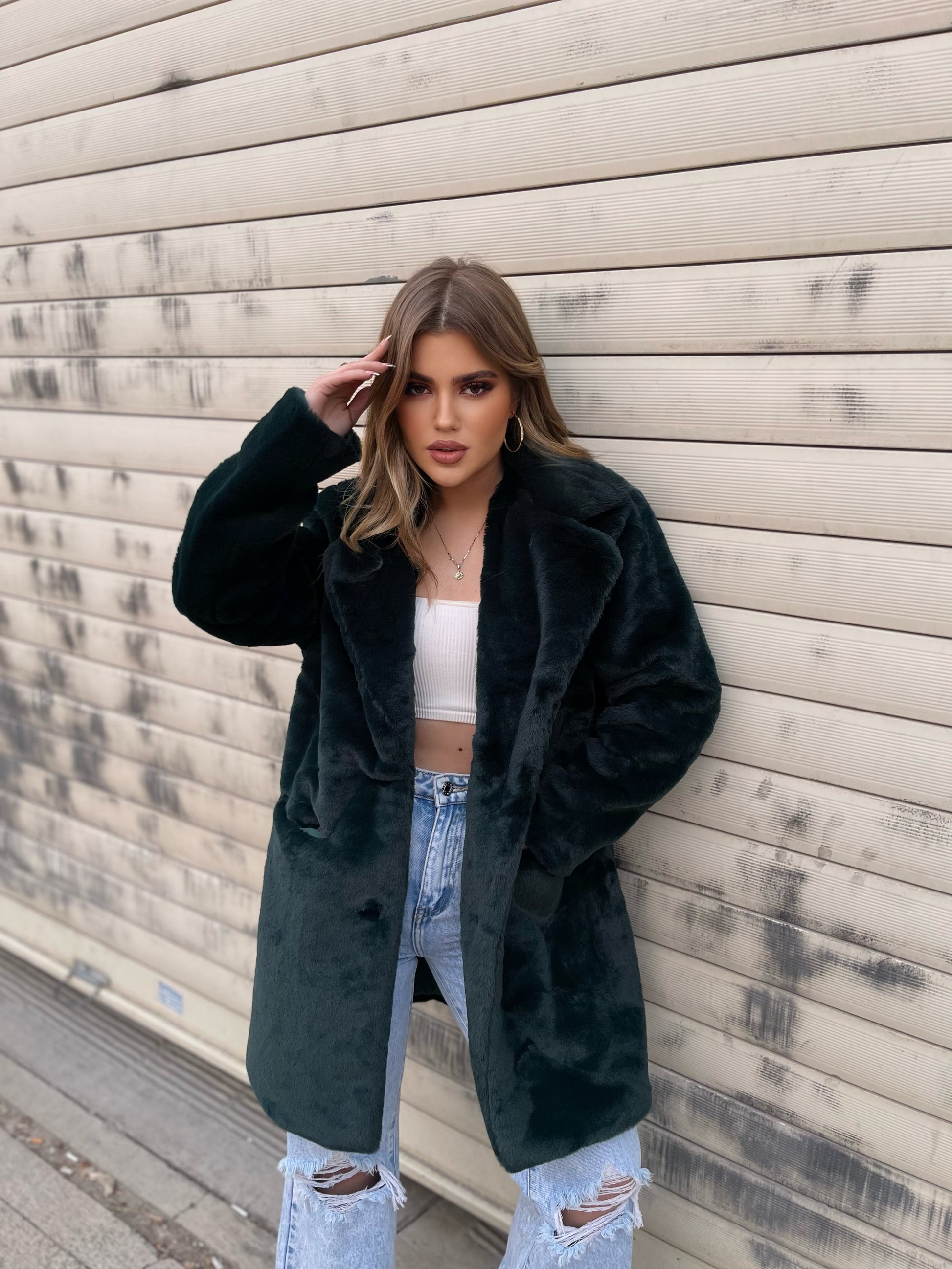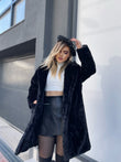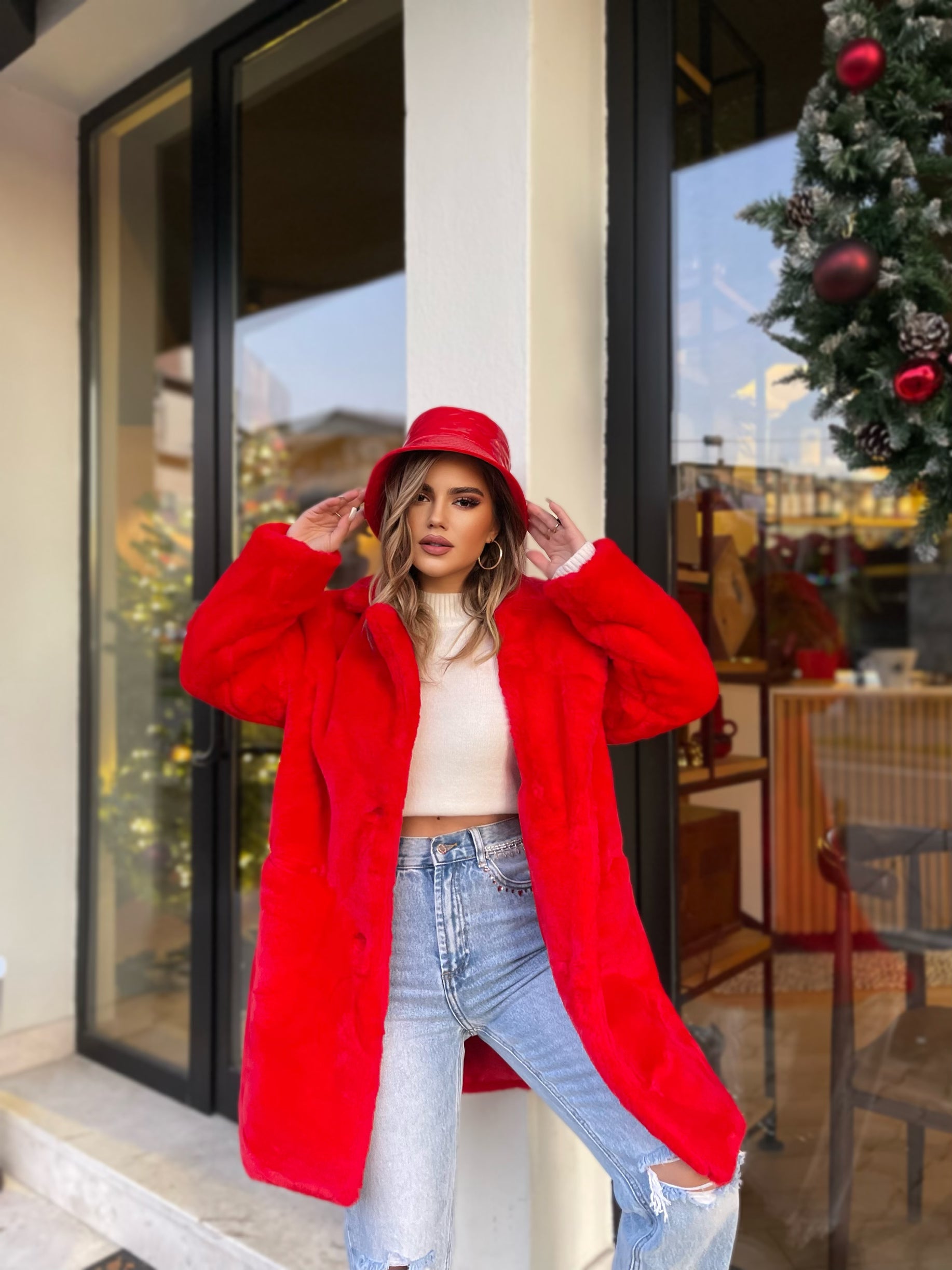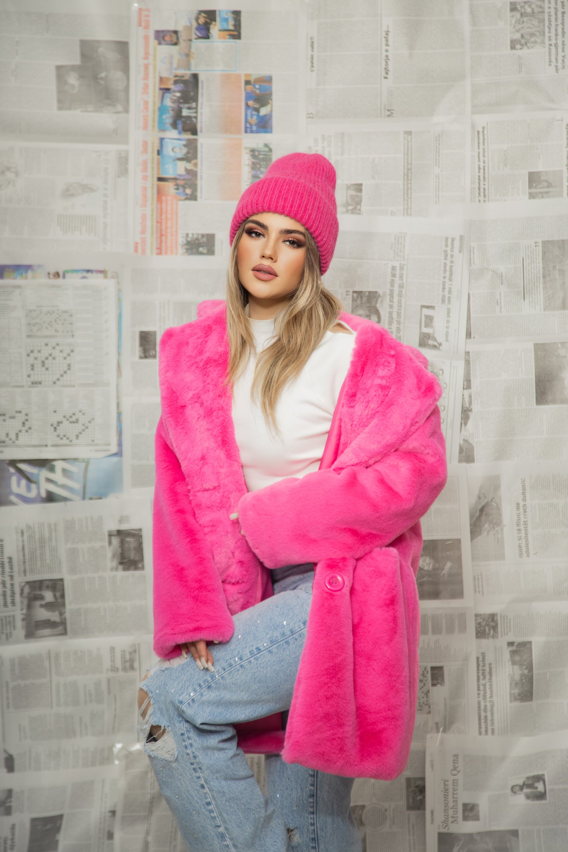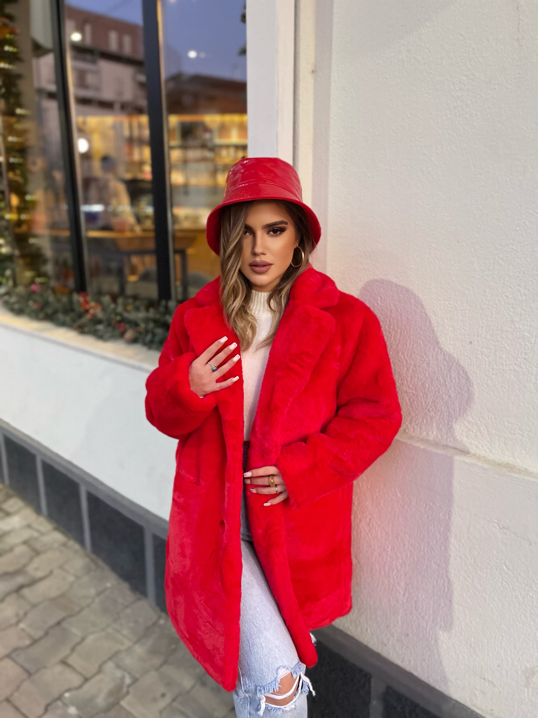 Pellush i zi me jake me kapak me xhepa pllak ne pjesen e perparme. Me menge te gjata. Mberthimi behet me kopsa ne pjesen e perparme. Pellushi ka gjatesi normale. Modeli vjen ne kater ngjyra : i zi, blu saks, jeshil dhe i kuq