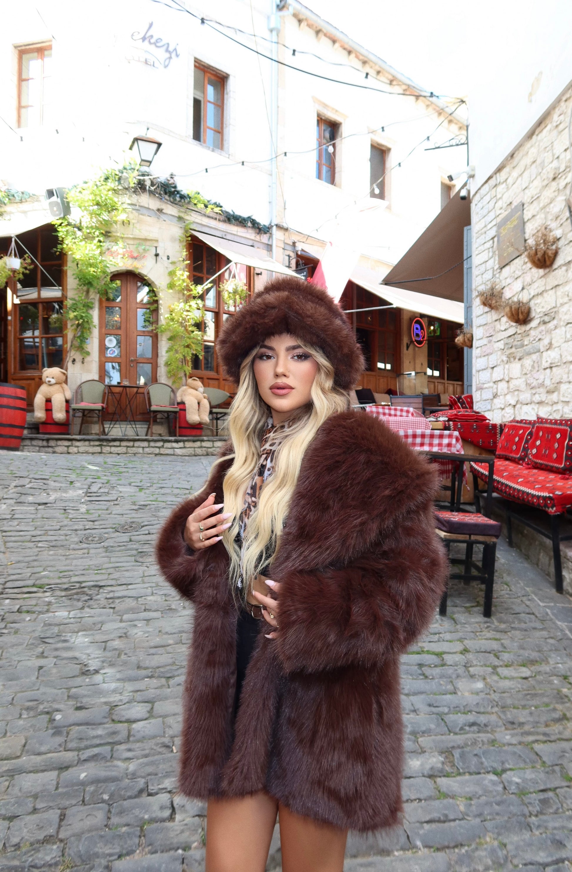 Pellush ne ngjyren kafe te erret. Vjen ne modelin me te kerkuar , me qime te plote shume cilesore. Teper i ngrohte per stinen dhe perfekt per cdo outfit.