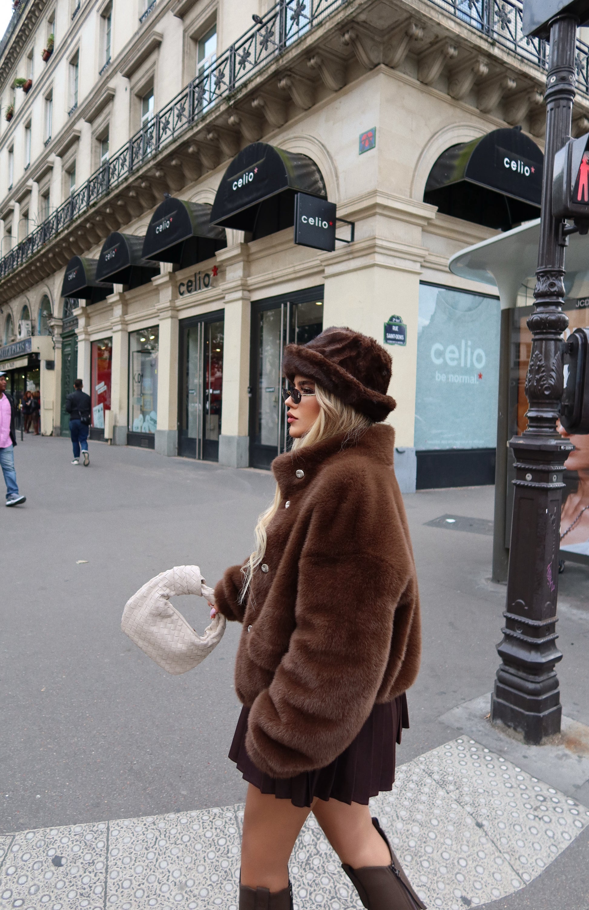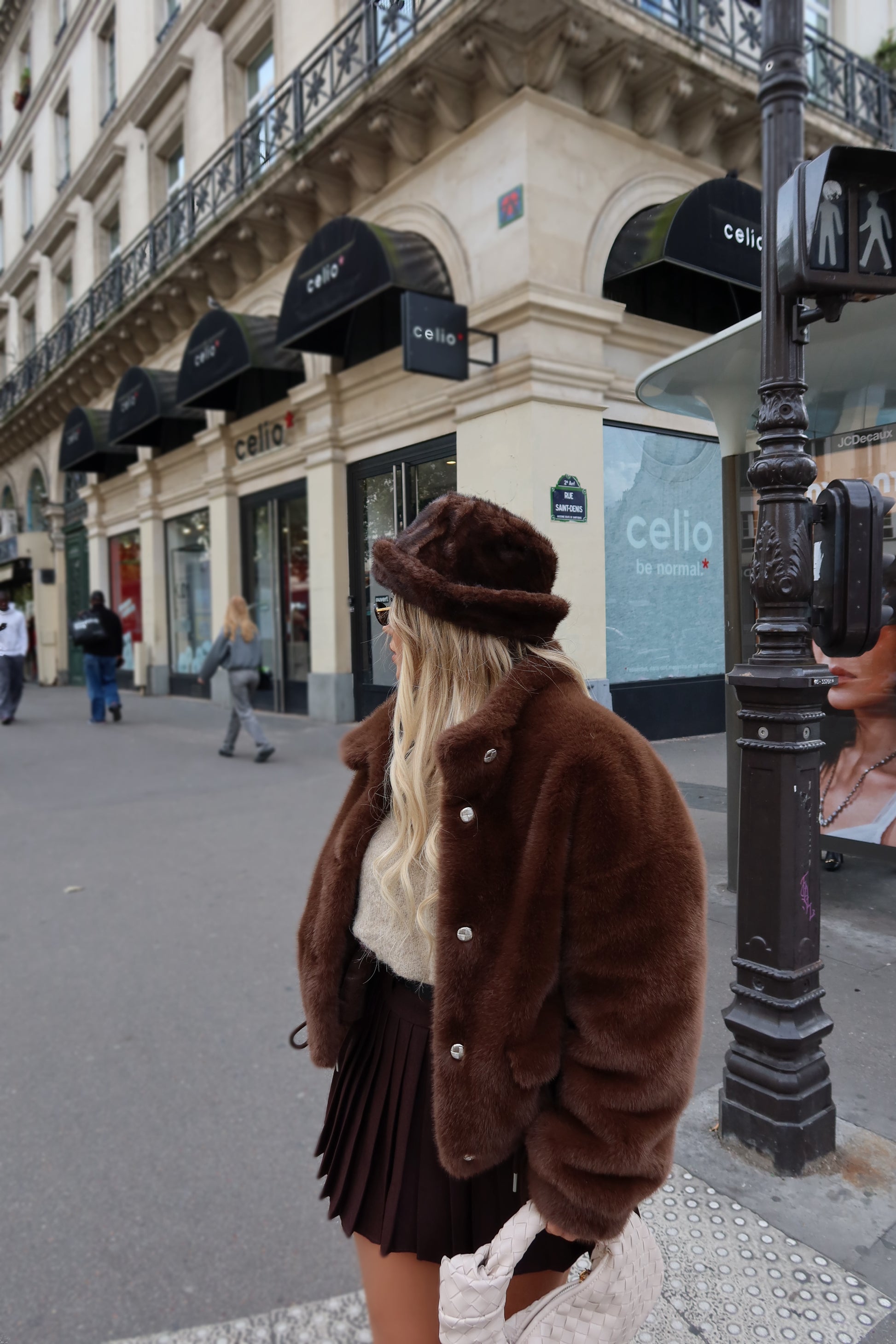 Pellush i shkurter me kopsa ,vjen ne ngjyren kafe. Ka material te plote, shume te ngrohte. Teper stil dhe lehtesisht i kombinueshem.