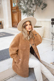 Pellush me jake me kapak me menge te gjata. Mberthimi behet me kopsa ne pjesen e perparme. Me xhepa pllak ne pjesen e perparme.