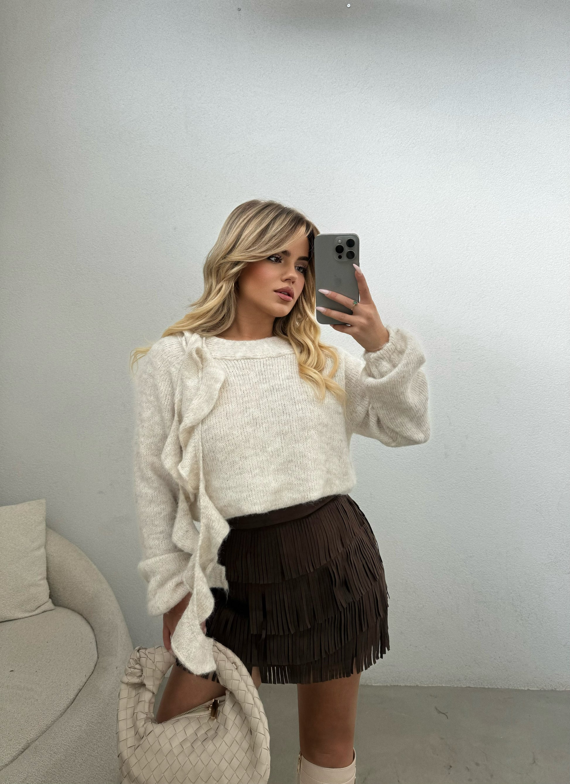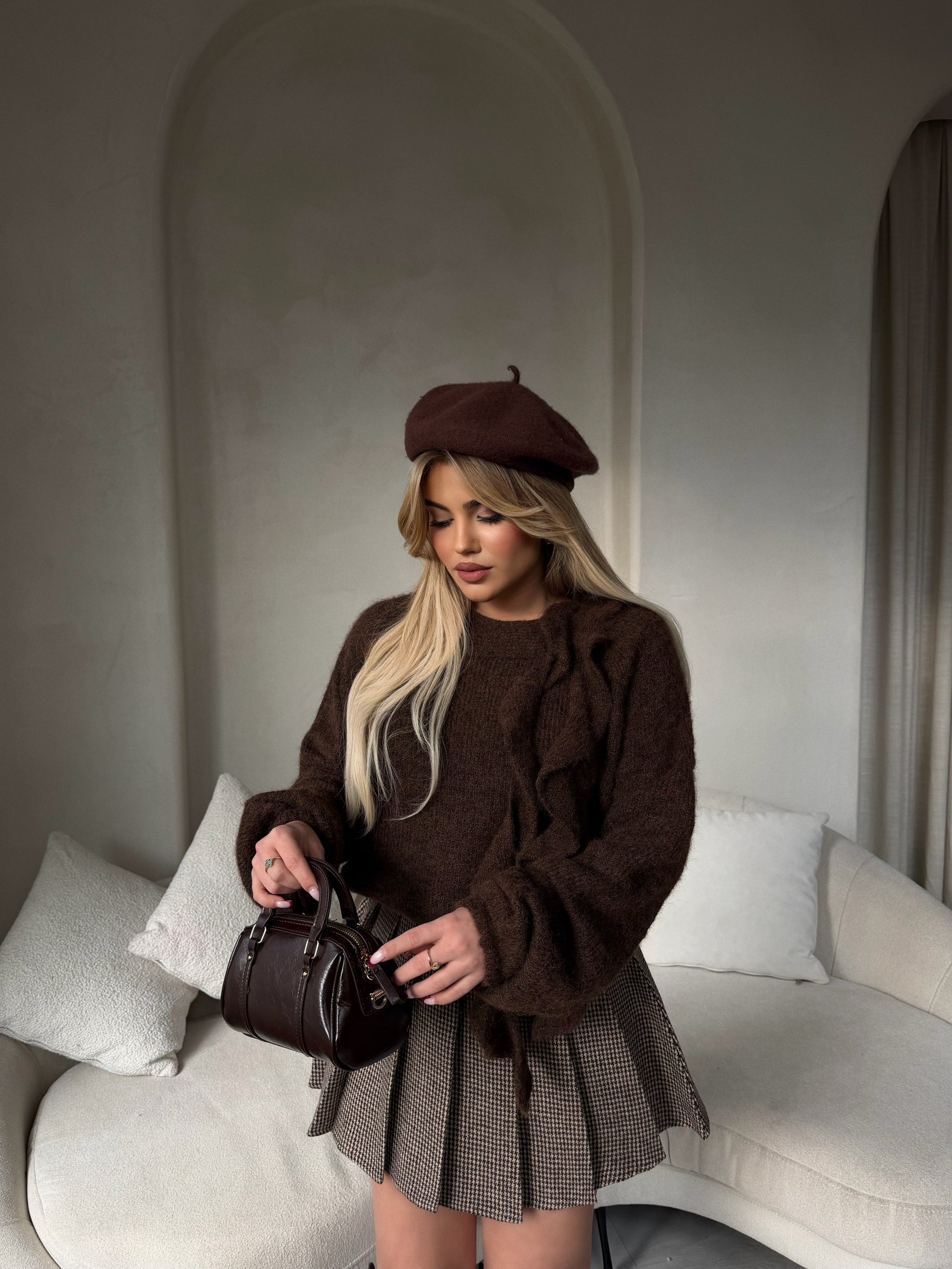 Pulover ne ngjyren bezhe dhe kafe,material i bute dhe i ngrohte. Lehtesishte e kombinueshme dhe komode.