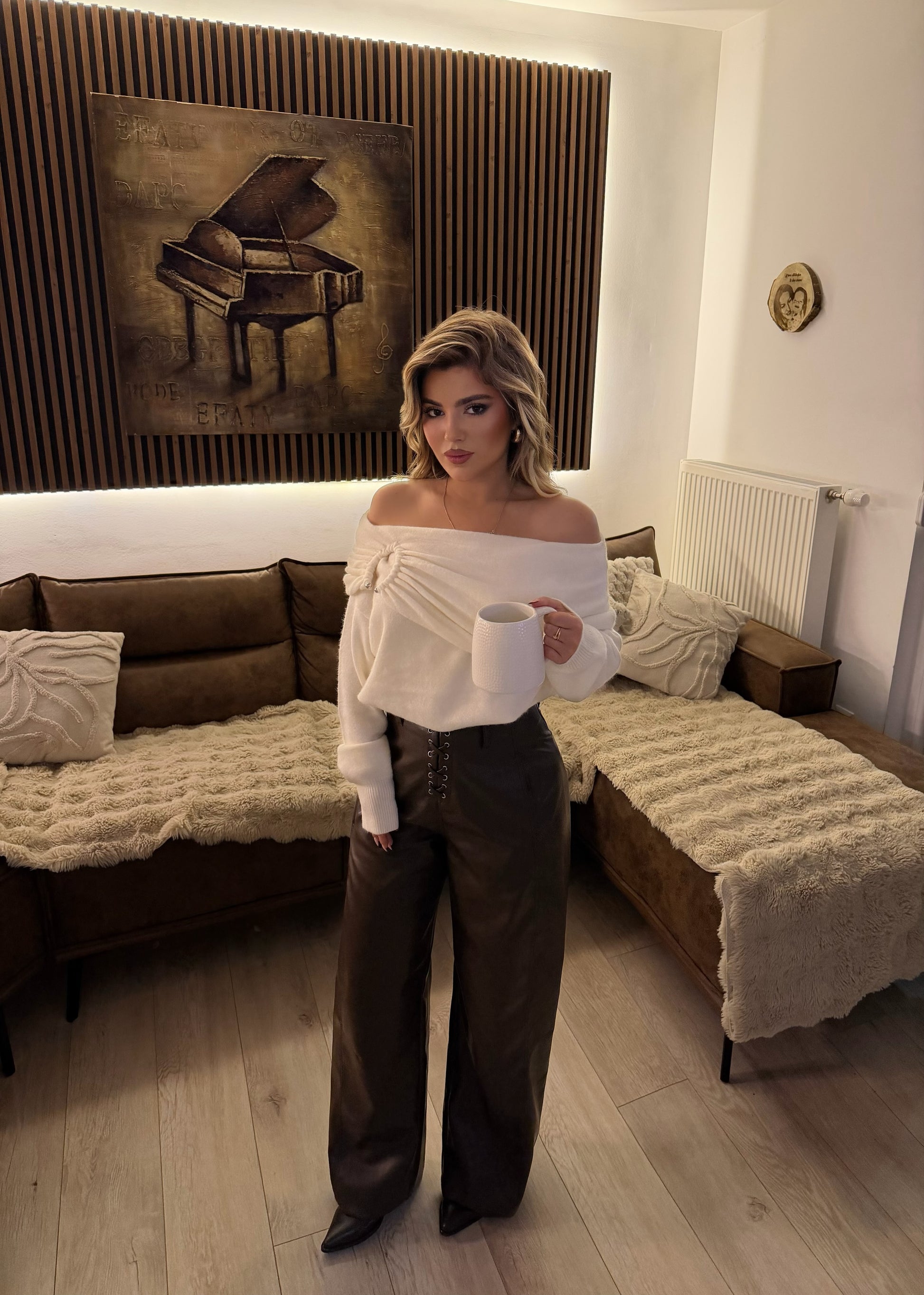 Pulover ne ngjyren e bardhe, material i bute shume komode. Lehtesishte e kombinueshme.