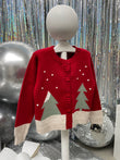Pulover festive me detaje me peme ne pjesen perpara. Vjen me kopsa para dhe eshte teper komode. Material i plote.