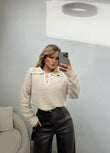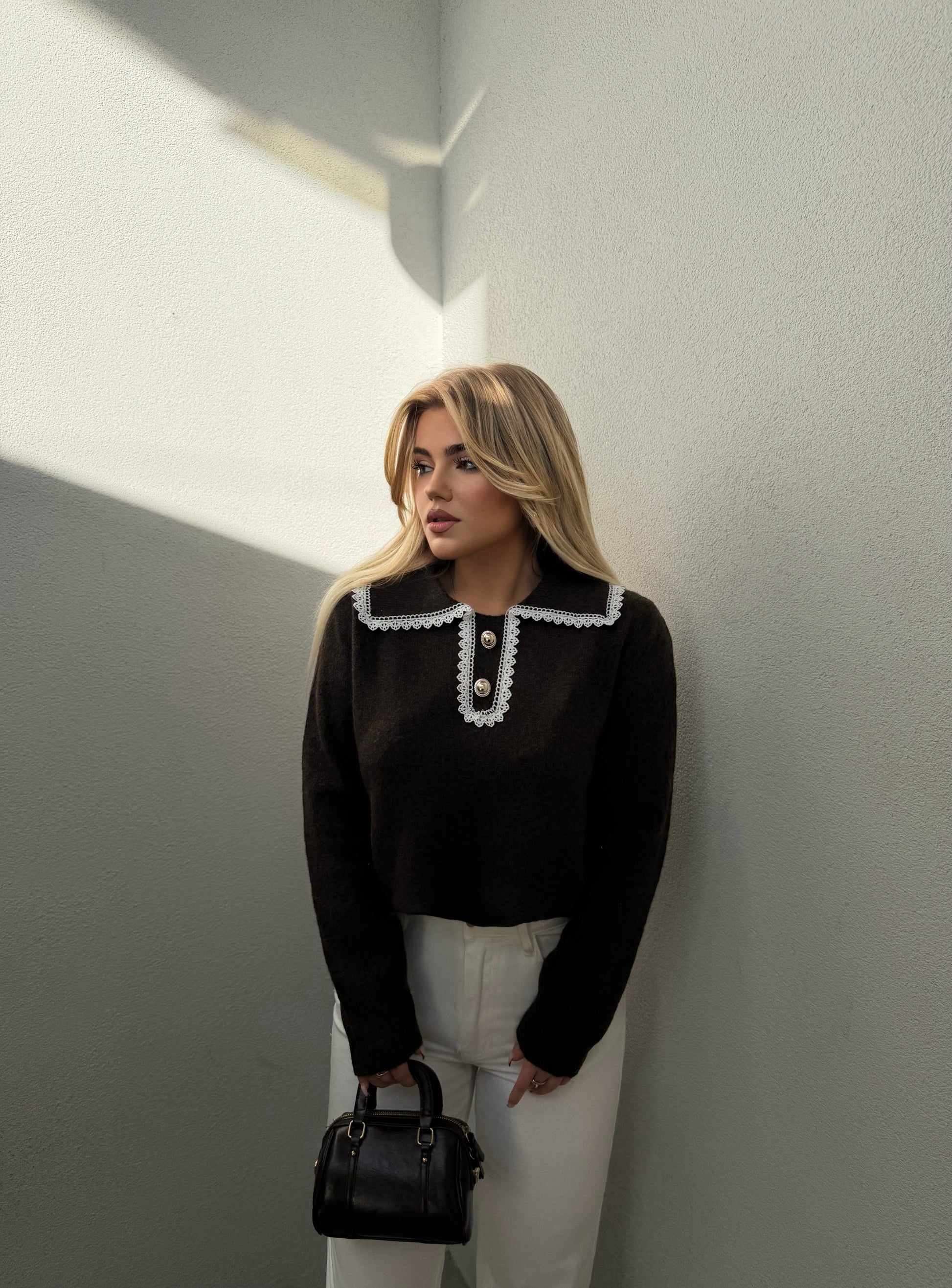 Pulovra vjen ne dy ngjyra kafe dhe bezhe, ka nje detaje te vecante te dantelles ne pjesen e Jakes e cila i jep me shume eleganc dhe stil. Material i bute dhe komode.