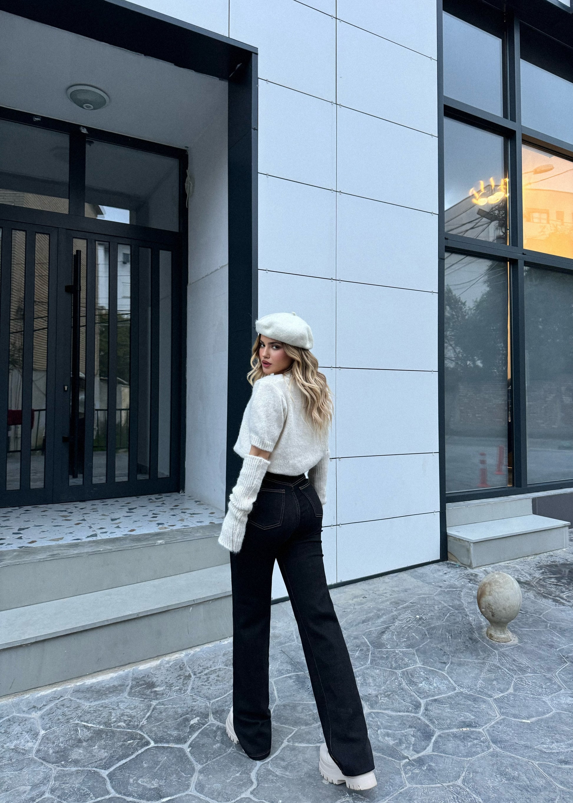 Pulover e shkurter me doreza. Vjen me detaj me fjongo para dhe eshte lehtesisht e kombinueshme. Cilesi fantastike.