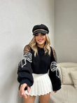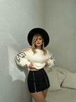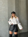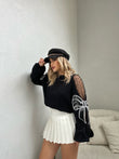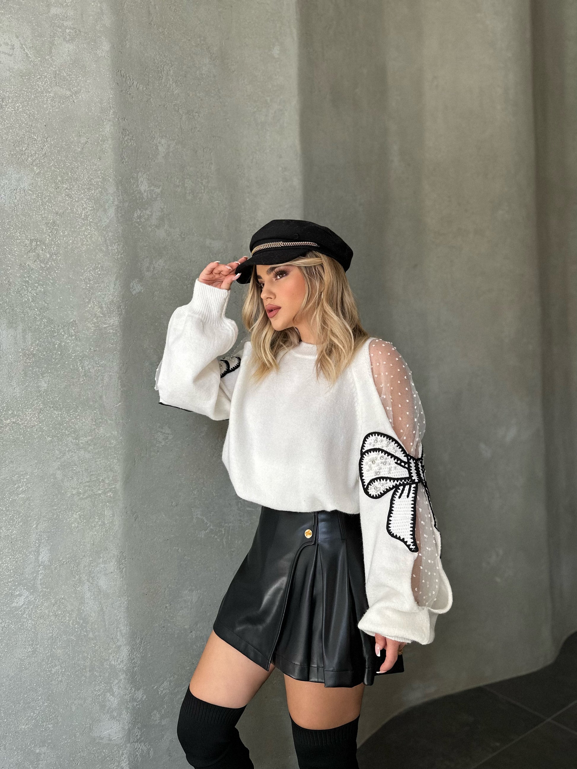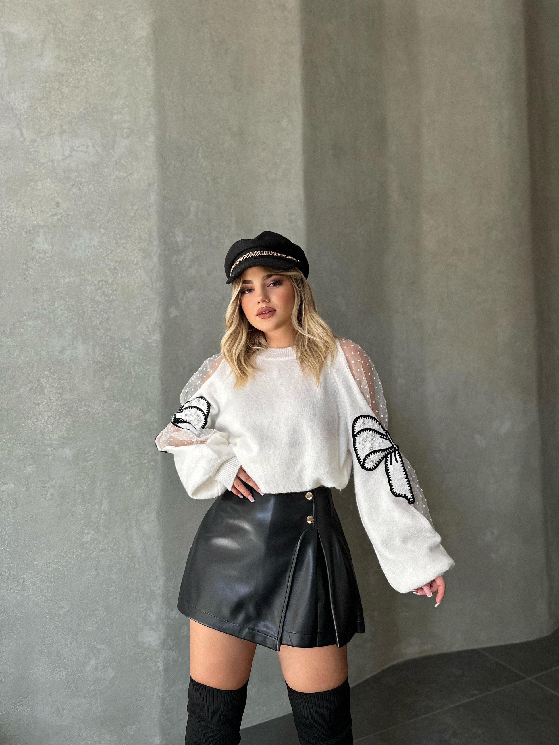 Pulover me fjongo dhe tyl tek krahet. Ka material pambuku dhe cilesi fantastike. Kombinohet lehtesisht me cdo veshje.