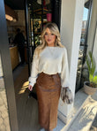Pulover ne ngjyren bezhe. Pulovra vjen me nje dizajn te vecant nga pase eshte me nje fjongo ne ngjyren leopard, material i plote dhe i ngrohte. Perfekte per tu dukur e vecant dhe e embel.