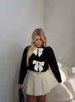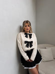 Pulovër e rehatshme dhe e ngrohtë, e punuar nga material i butë dhe i ngrohte. Disponohet në ngjyrë të zezë dhe bezhë, me fjongo dekorative në pjesën e përparme, ideale për një stil elegant dhe të përditshëm.