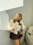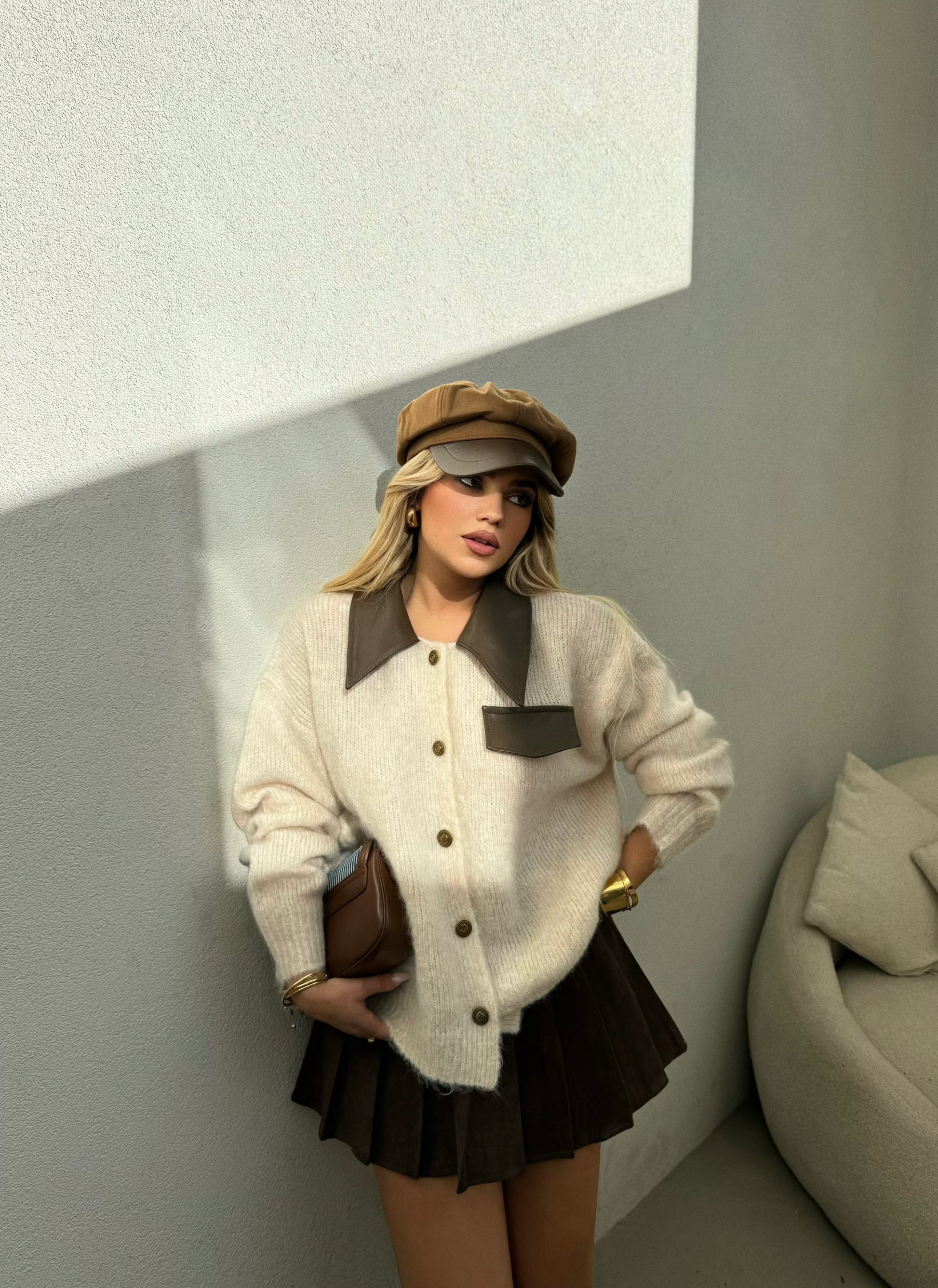 Pulover me jake lekure. Mbyllet me kopsa para. Material i bute dhe teper i ngrohte.