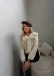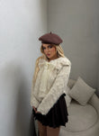 Pulover ne ngjyren bezhe,ne pjesen e jakes pulovra eshte me disa trendafila te punuar me dore,ne pjesen para eshte e paisur me kopsa. Ideale per tu dukur e vecant dhe e embel.