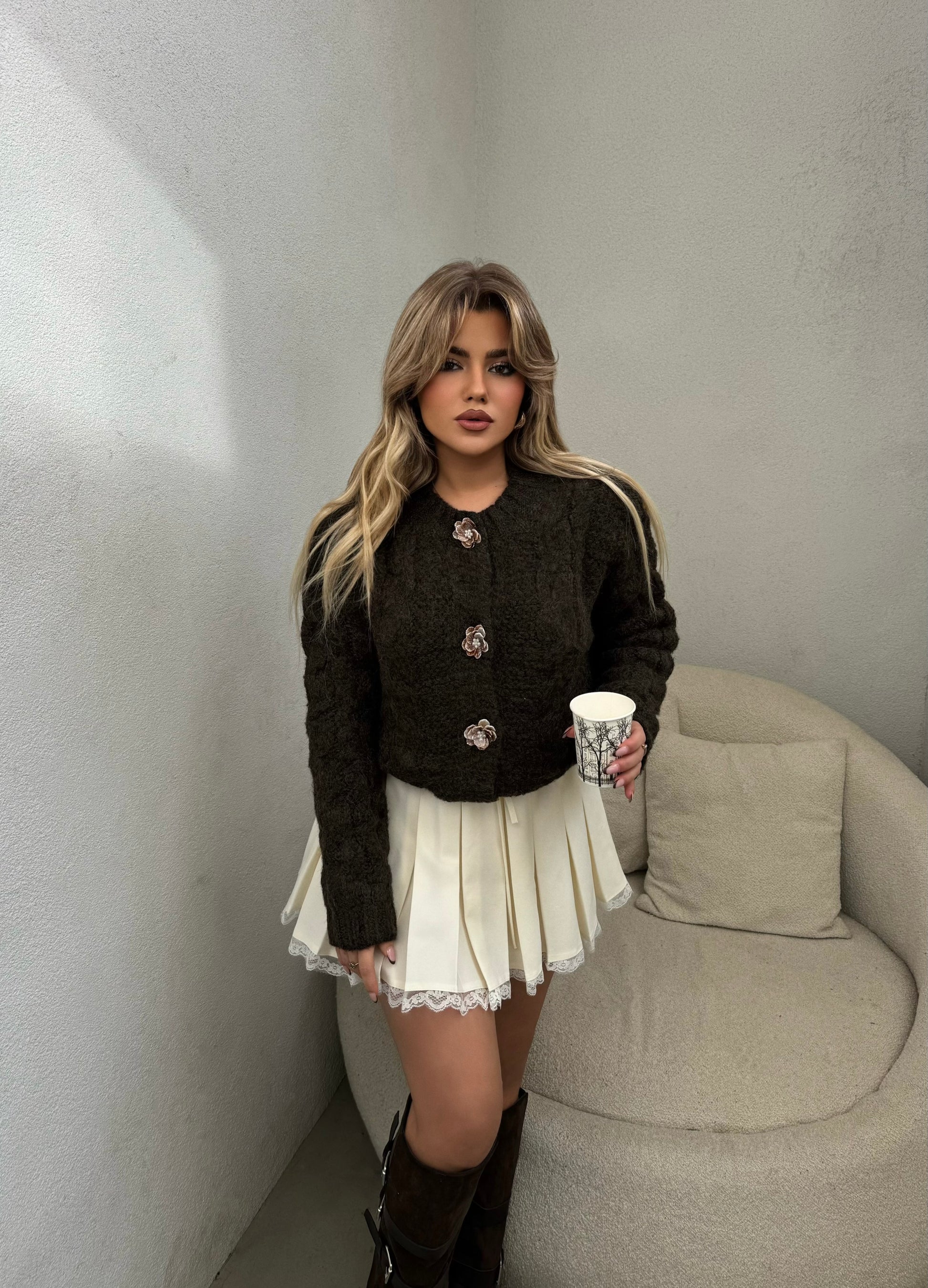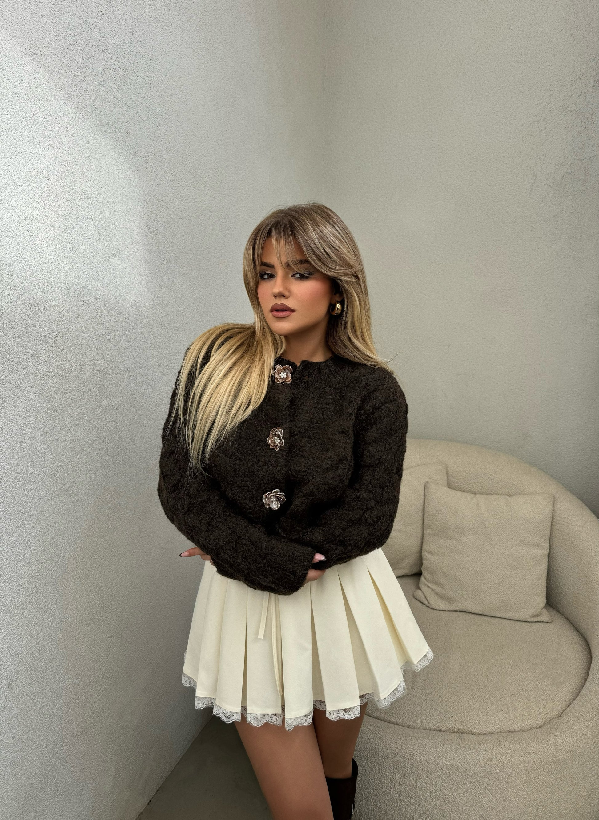Pulover me kopsa ne forme lulesh. Material i plote dhe teper i ngrohte.