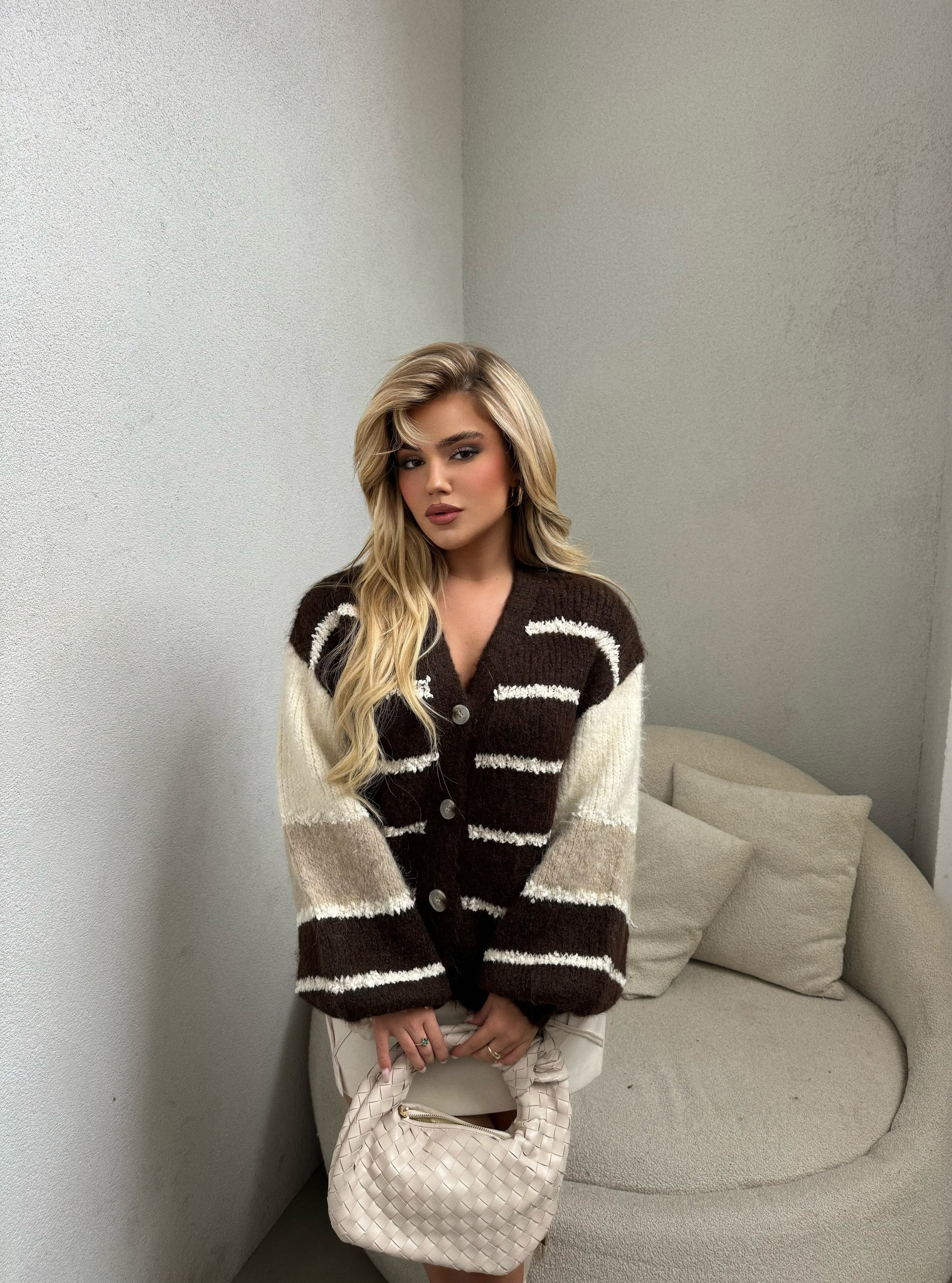 Pulover me kopsa perpara ne ngjyren kafe, ka nje dizejno teper te vecant. Material eshte i bute dhe i ngrohte, lehtesishte e kombinueshme.