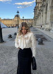 Pulover ne ngjyren bezhe me kopsa dhe pika. Vjen me lidhje tek qafa , shume e vecante. Ka material te plote shume te ngrohte. Teper komode dhe lehtesisht e kombinueshme.