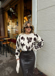 Pulover me jake rrethore me lule te qendisura. Material i plote i bute dhe shume i ngrohte
