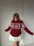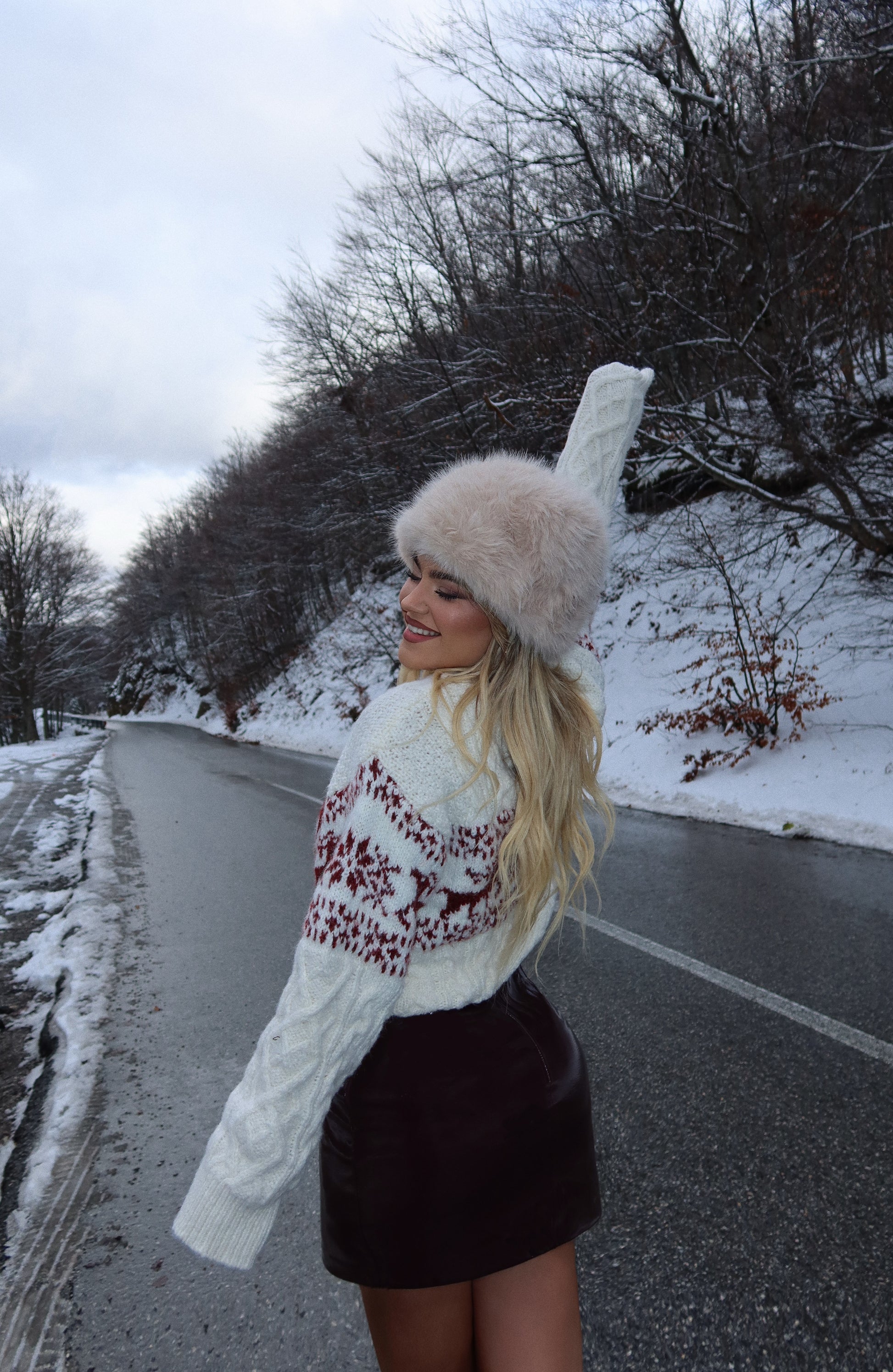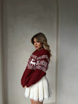 Pulover e bute ne ngjyrë bezhë, me motive festive dhe drerë që sjellin frymën e Krishtlindjeve. Material i plote dhe i ngrohte dhe komod, ideal për ditët e ftohta dhe momentet festive me stil të këndshëm.