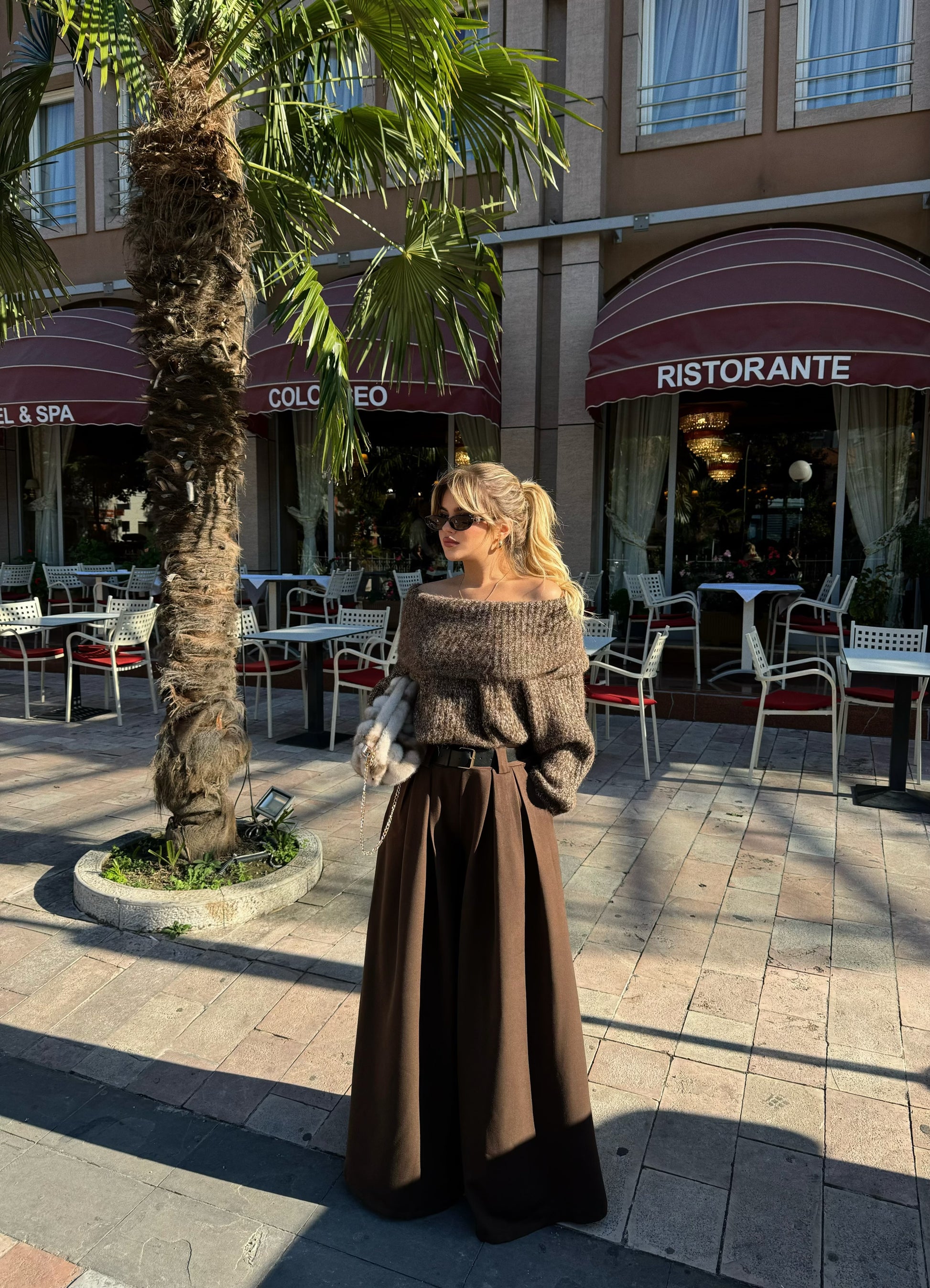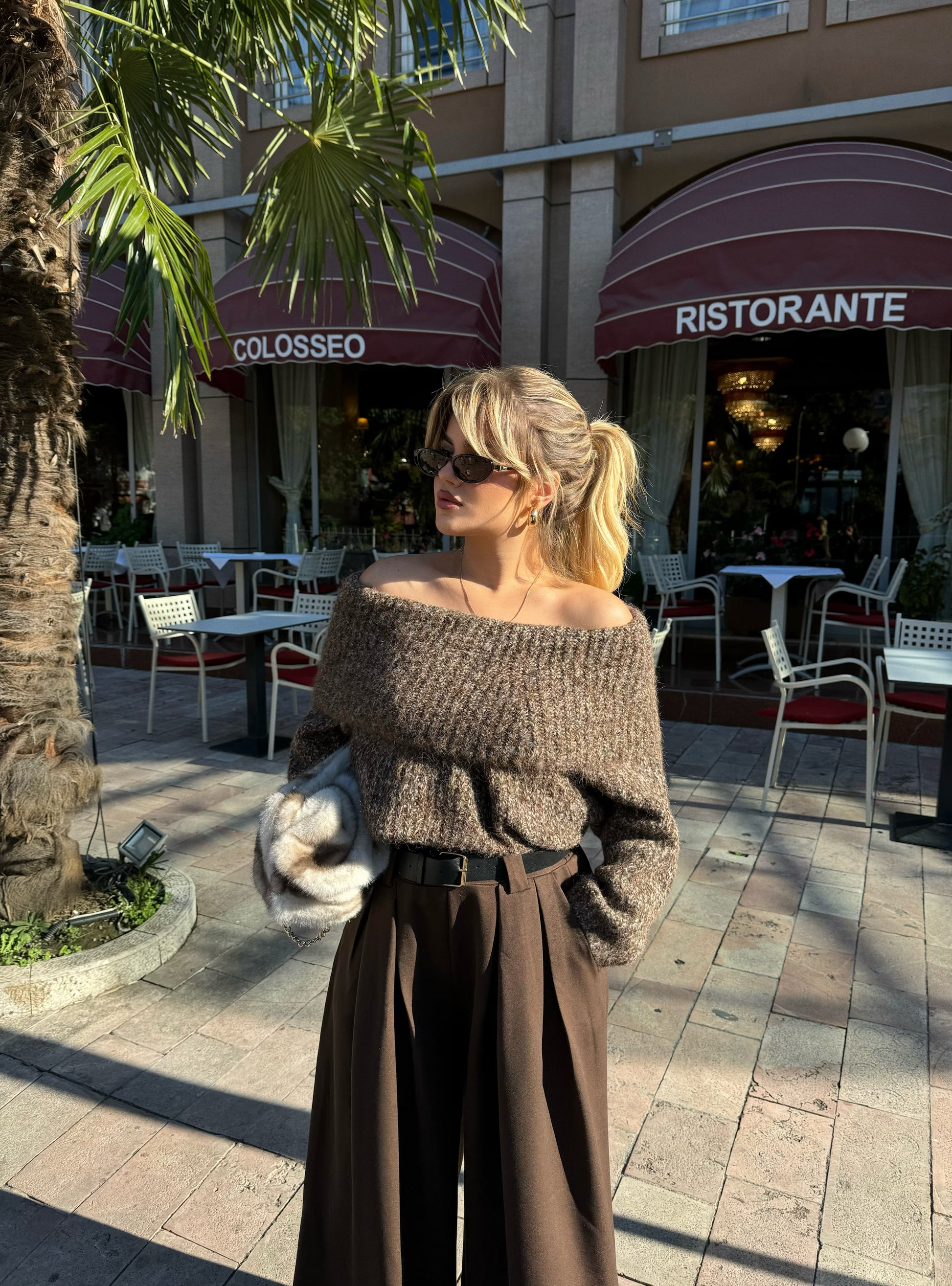 Pulover ne ngjyren bezhe dhe kafe,eshte me supe jashte me nje stil te vecante. Material i bute dhe i ngrohte. Perfekte per tu dukur stil.