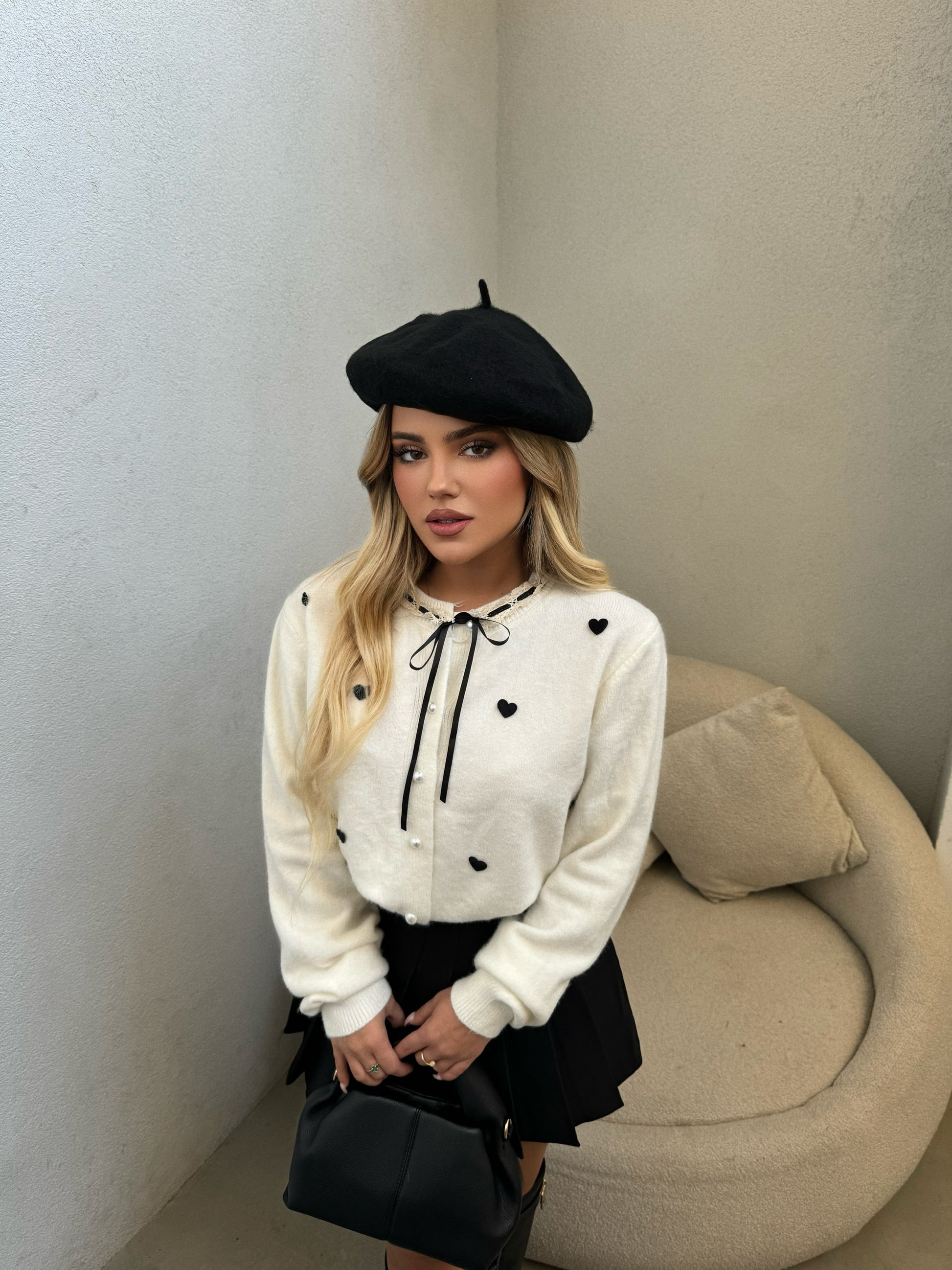 Pulover e bardhe me zemra te zeza, material i bute. Lehtesishte e kombinueshme.