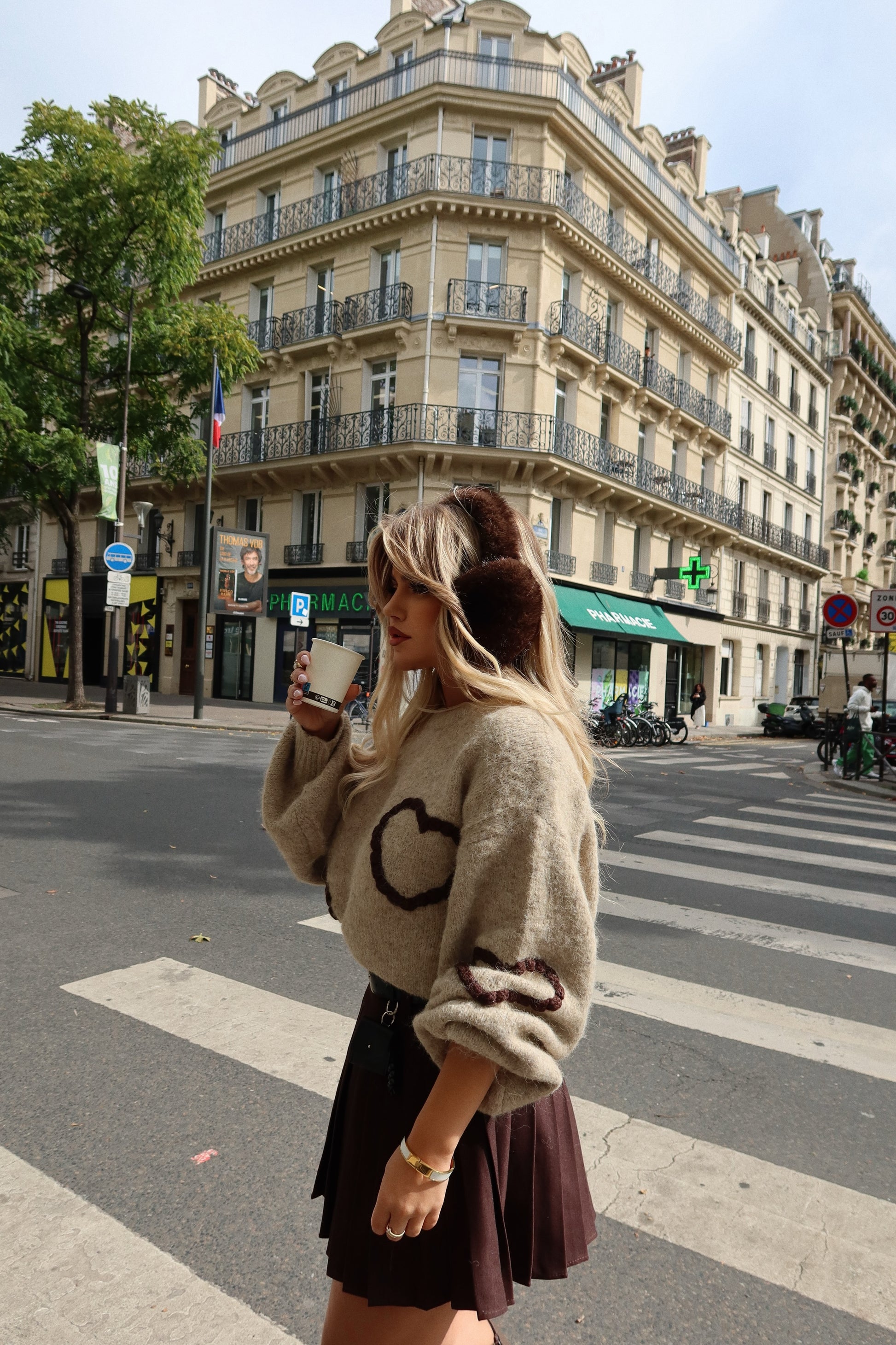 Pulover me zemra kafe. Material i plote. Teper i ngrohte. Lehtesisht e kombinueshme dhe teper stil.