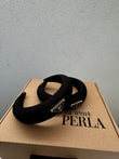 Rreth koke stilor ne ngjyre te zeze, i zbukuruar me detaje metalike “Prada” per nje pamje elegante dhe luksoze.