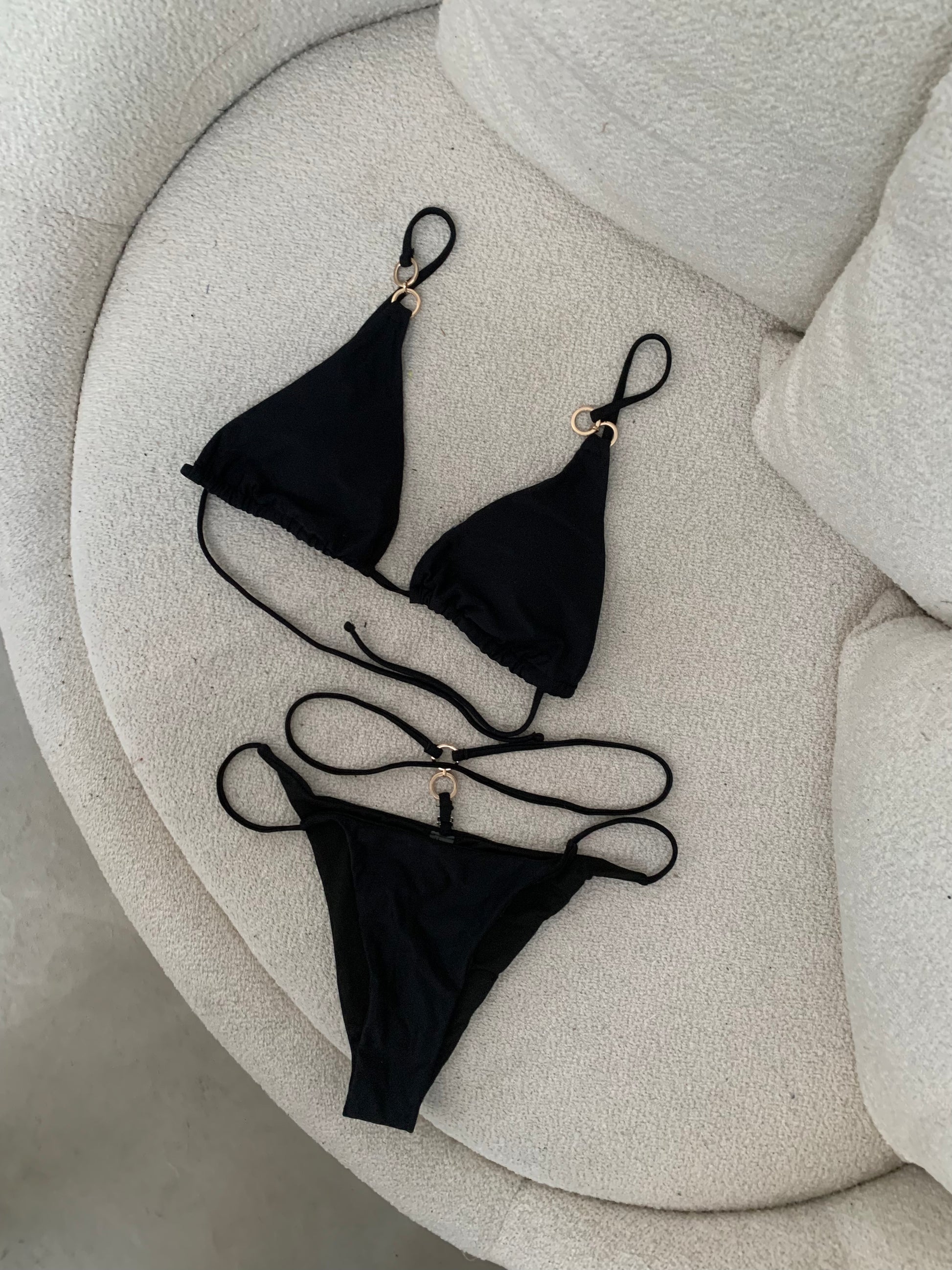 Rroba banjo me togza ne pjesen e lidhseve. Mberthimi behet ne pjesen e pasme me lidhje. Bikini eshte me rrip te gjate dhe lidhja kalon deri ne theksimin e belit. Modeli vjene ne dy ngjyra: jeshile dhe te zeza.
