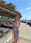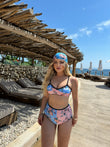 Rroba banjo me tre pjese. Eshte me bikini dhe fund te care anash. Vjen me detaje me lule dhe eshte shume komod.