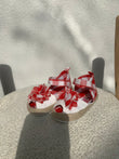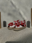 Sandale me lule ne pjesen e siperme . Ka dizenjo kuadratash. Cilesi fantastike dhe kombinohet me cdo veshje.