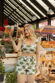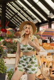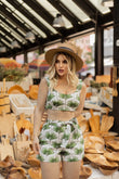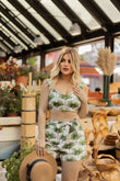 Set me crop dhe pantallona te shkurter. Cropi ka rripa dhe vjen i hapur ne pjesen e siperme. Ka material te plote dhe cilesi fantastike.