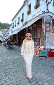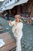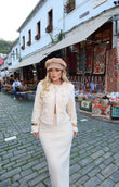 Set ngjyre panë. Material i ngrohte, i bute dhe komod. Vjen me pjesen e xhaketes se pellushte te thjeshte dhe fundit te gjate.