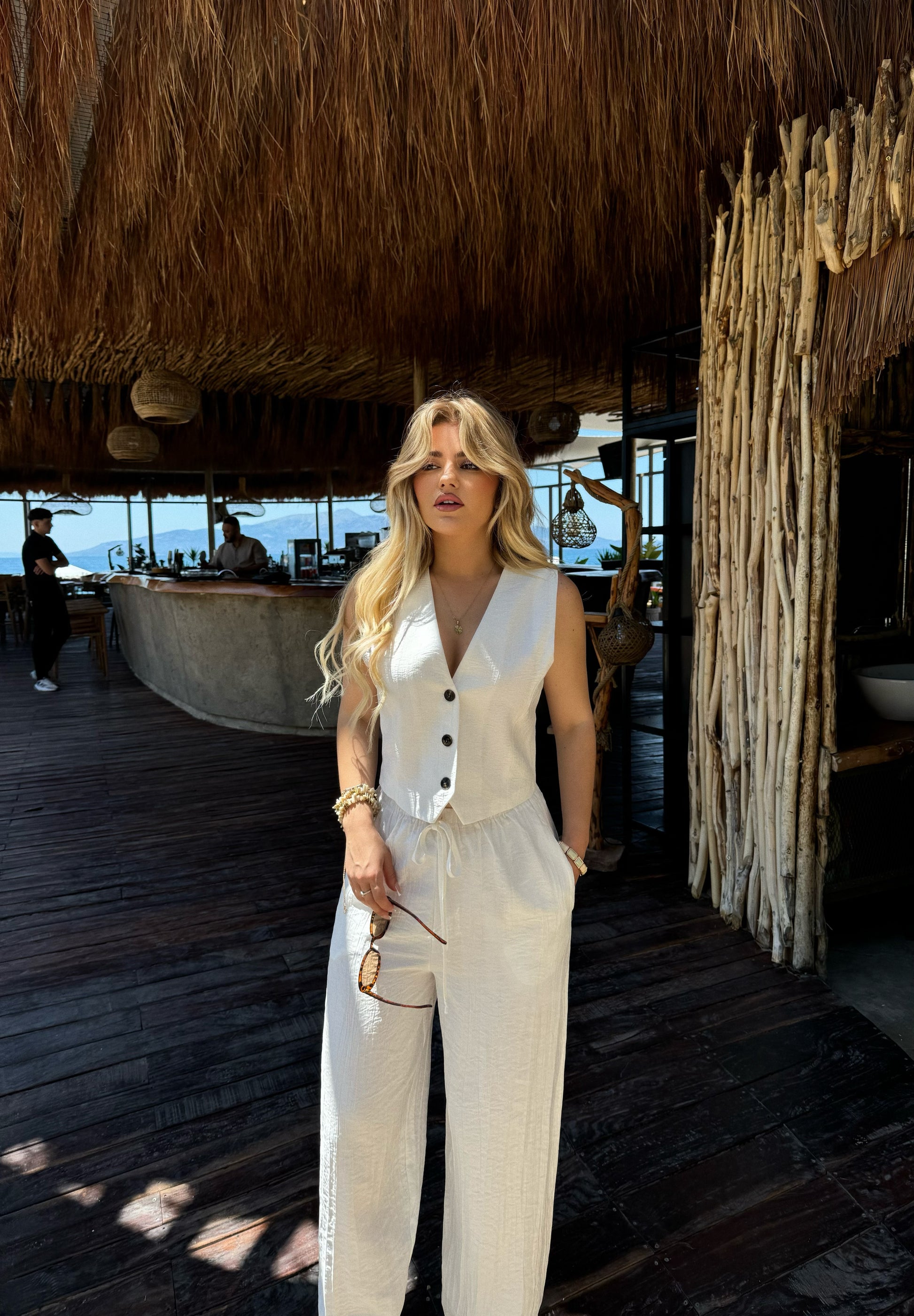 Set me jelek dhe pantallona te gjata. Eshte i lirshem si model dhe shume komod. Ka material te plote dhe cilesi fantastike.