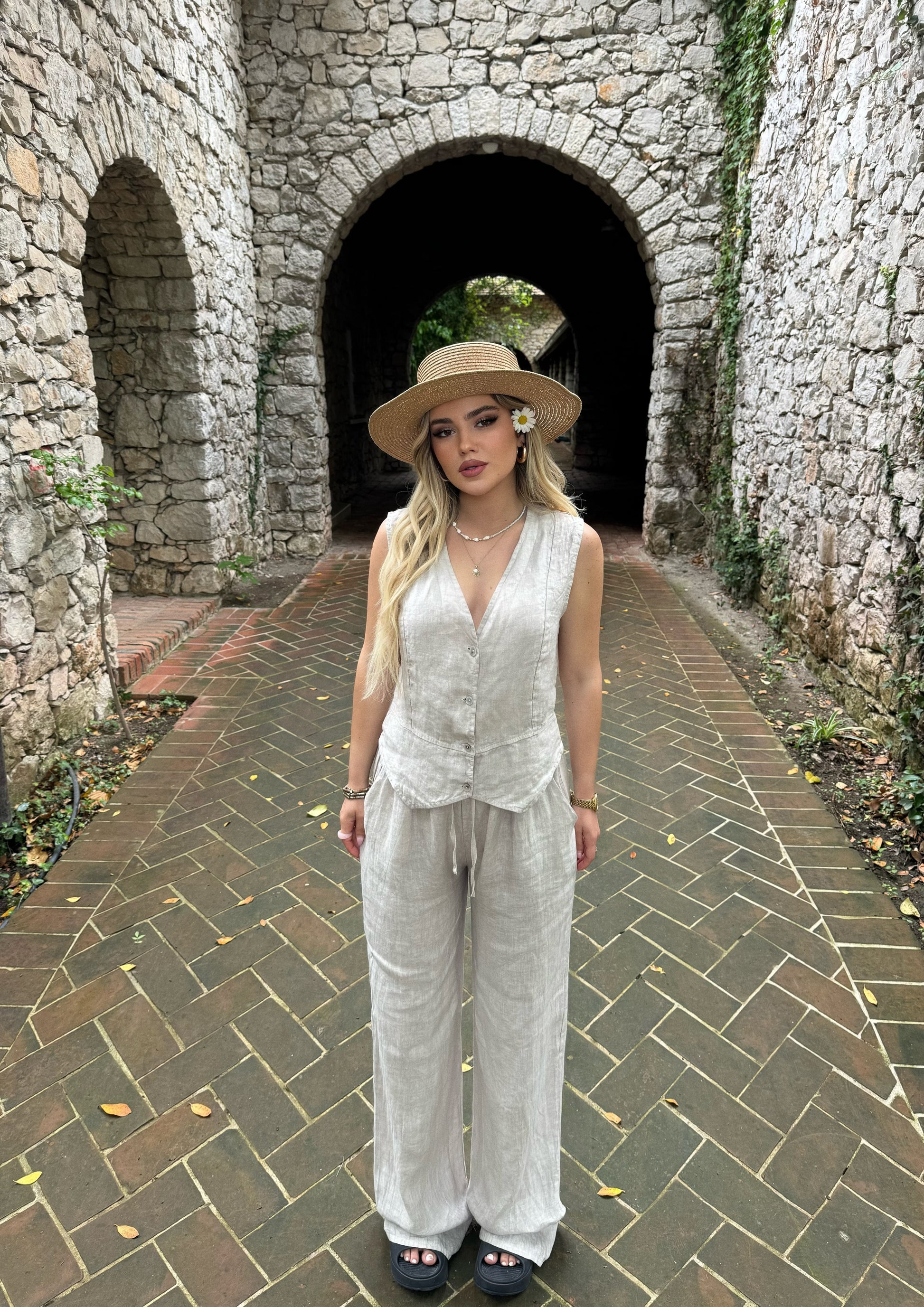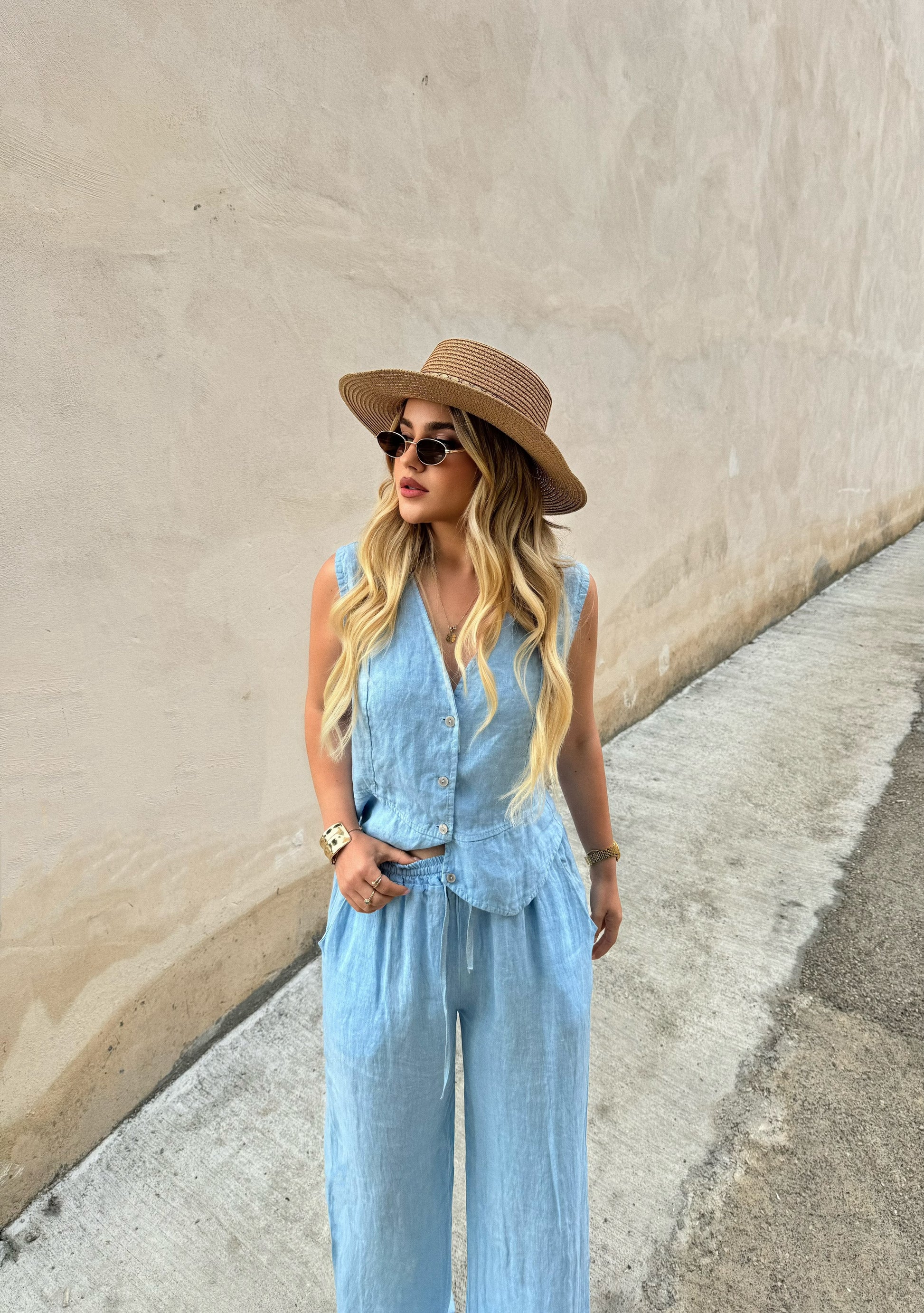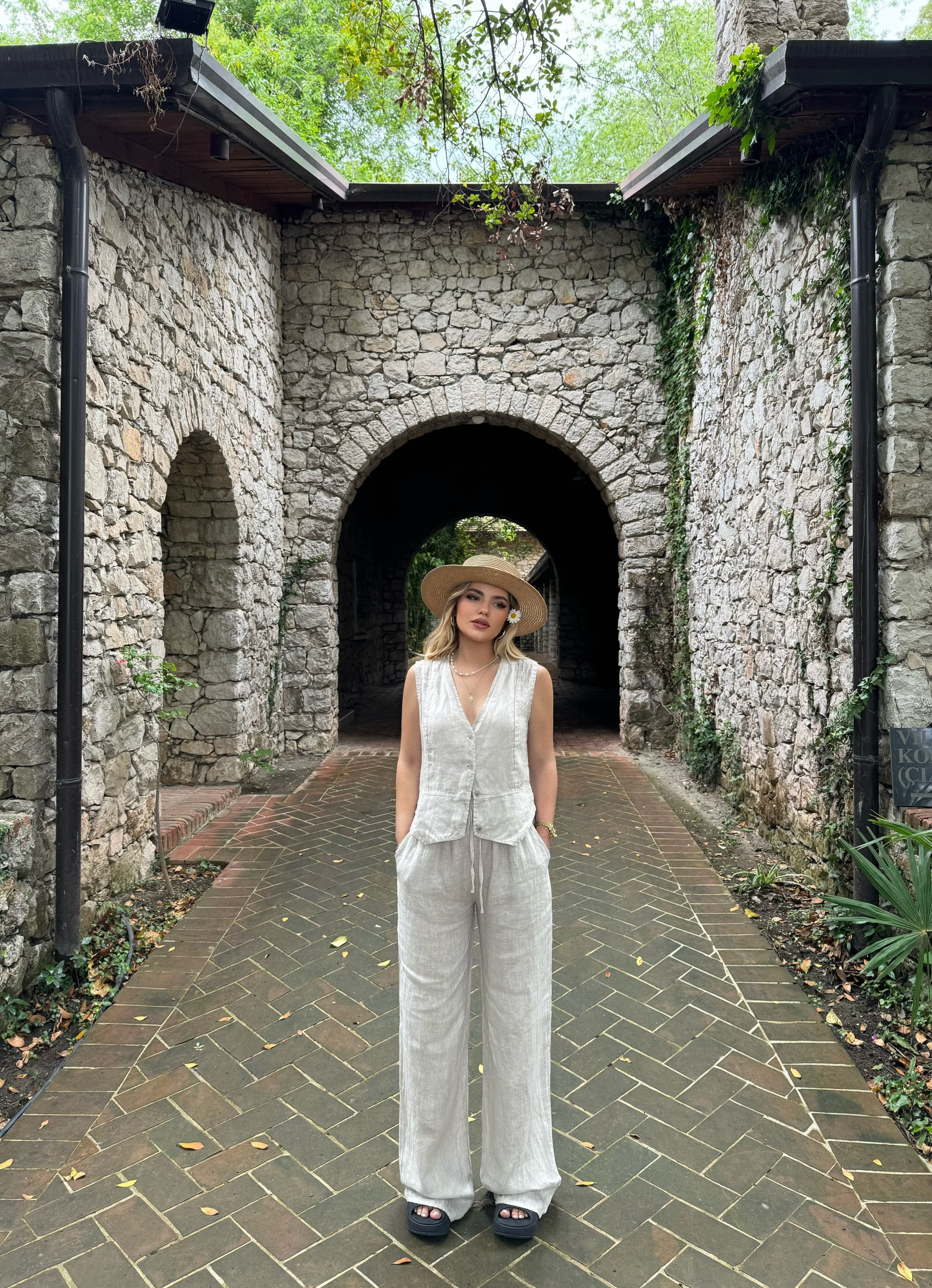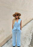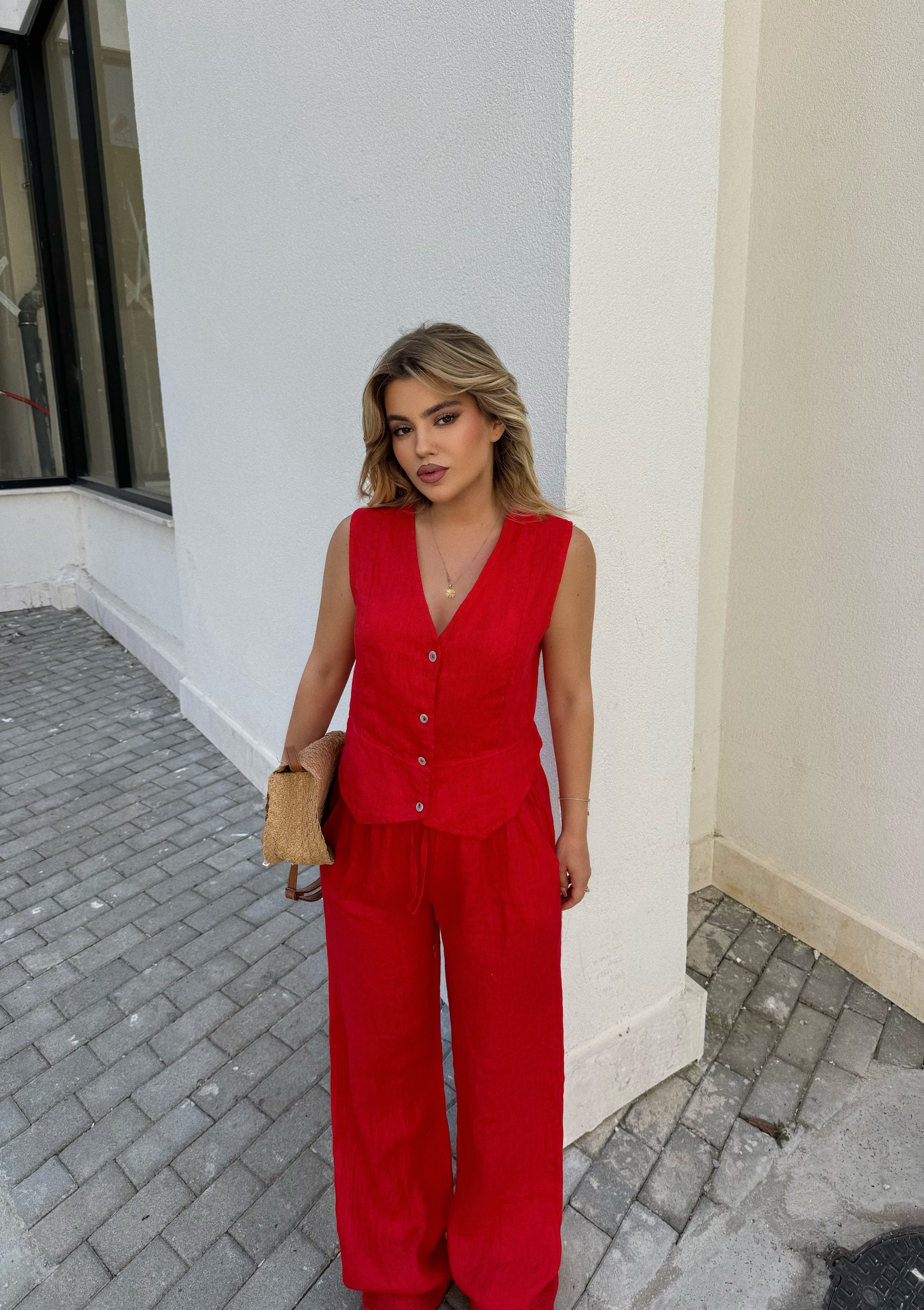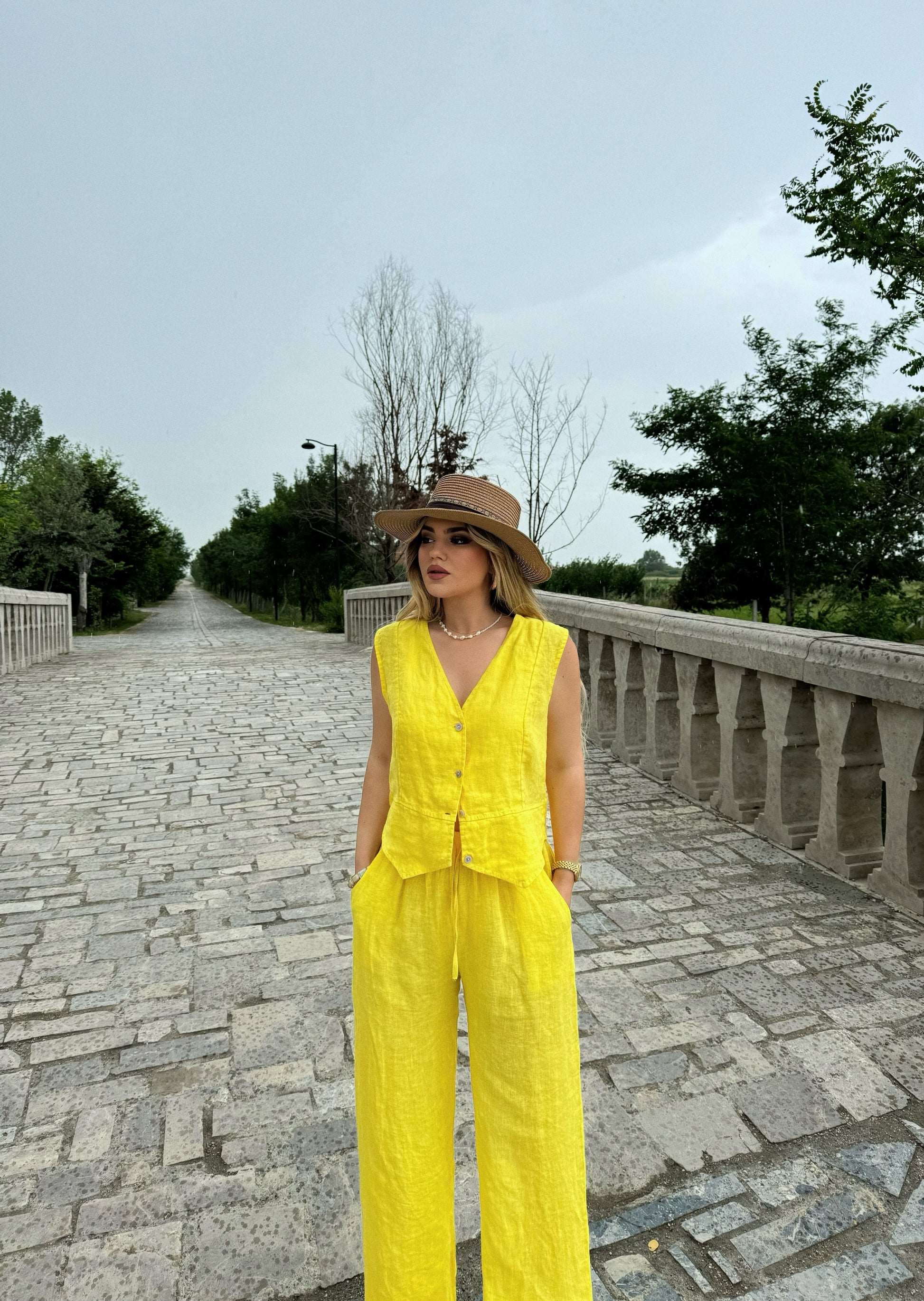 Set lino me dy pjese. Eshte me jelek dhe me pantallona te gjata. Jane teper stil dhe komode. Vjen ne 8 ngjyra te ndryshme. Material i plote dhe cilesi fantastike.