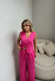 Set lino me dy pjese. Eshte me jelek dhe me pantallona te gjata. Jane teper stil dhe komode. Material i plote dhe cilesi fantastike.