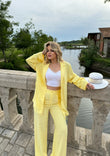 Set lino me kemishe dhe pantallona te gjata. Kemisha eshte me lidhje ne bel. Pantallonat jane te gjera dhe shume te rehatshme. Ka material te plote dhe cilesi fantastike.